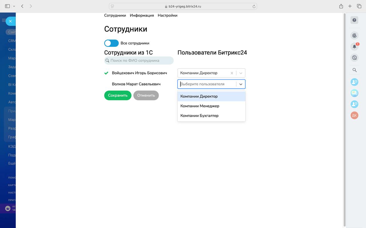- Автоматическое обновление данных об отсутствиях в календаре Битрикс24.