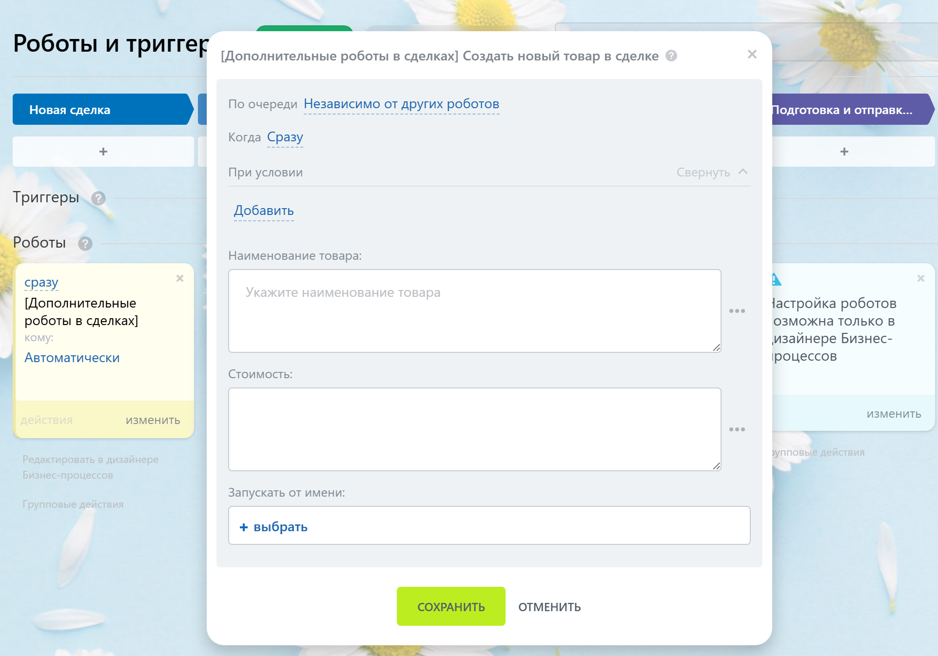 Создание товара на основании любого поля в карточке сделки, компании, либо контакта.