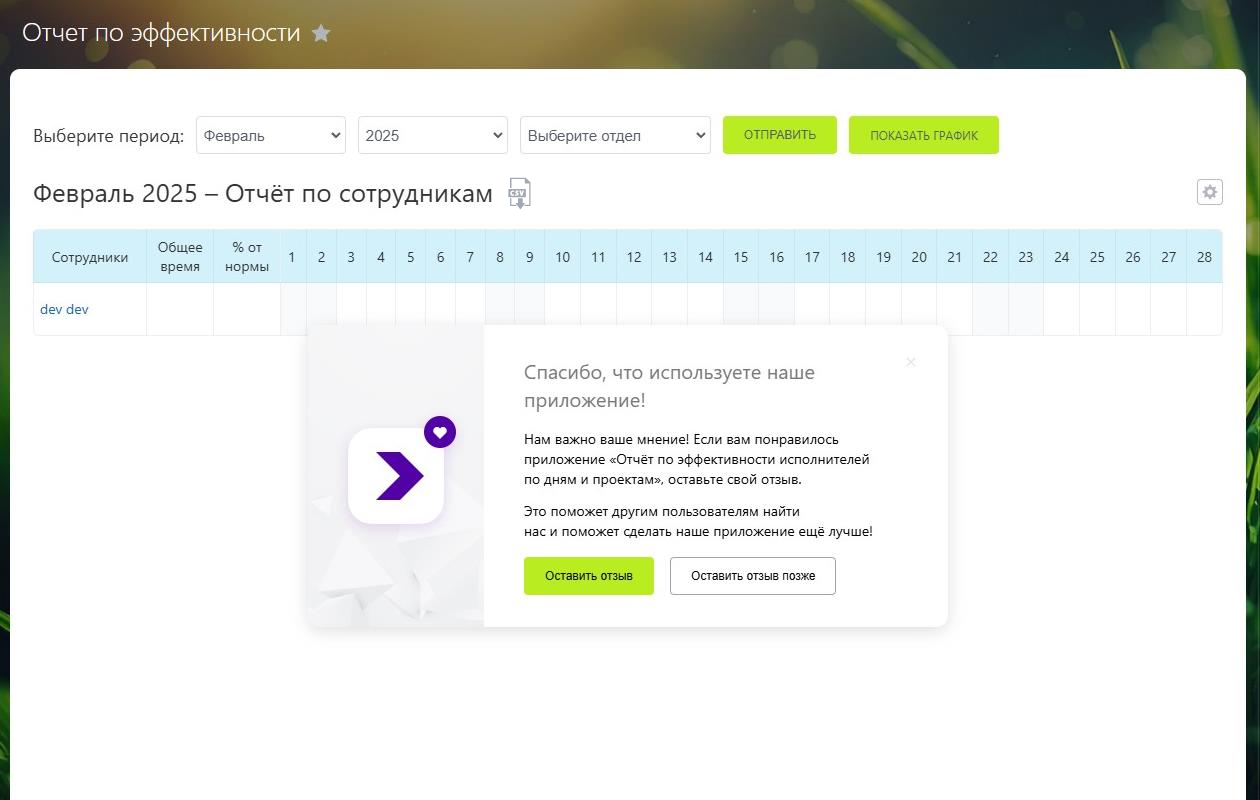 Простое и удобное приложение для получения отчета по исполнителям в задачах.