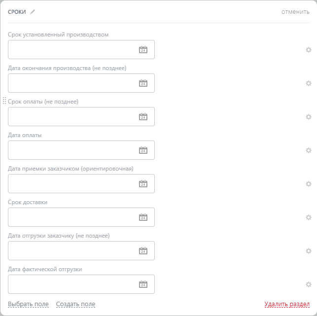 Созданы дополнительные и обязательные поля* для фиксации всевозможной информации и контроля указанных сроков.