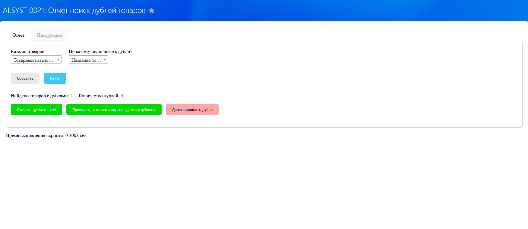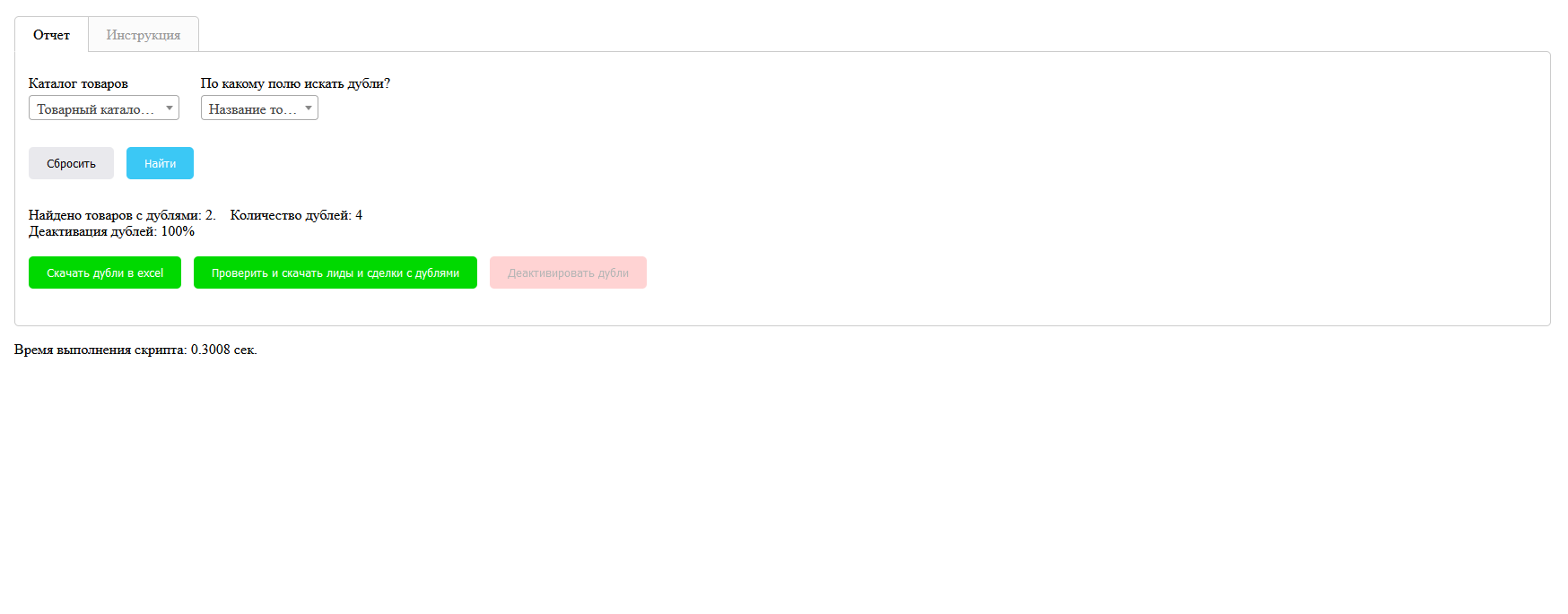 - После деактивации дублей атоматически или деактивации/удаления самостоятельно вручную рекомендуется перезапустить отчёт, чтобы убедиться, что дублей не осталось.