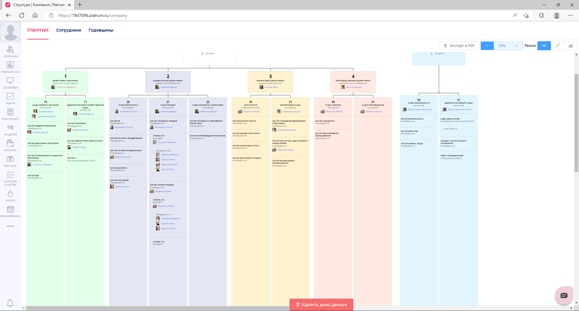 Приложение позволяет импортировать структуру компании, пользователей и задачи из вашего проекта Platrum.