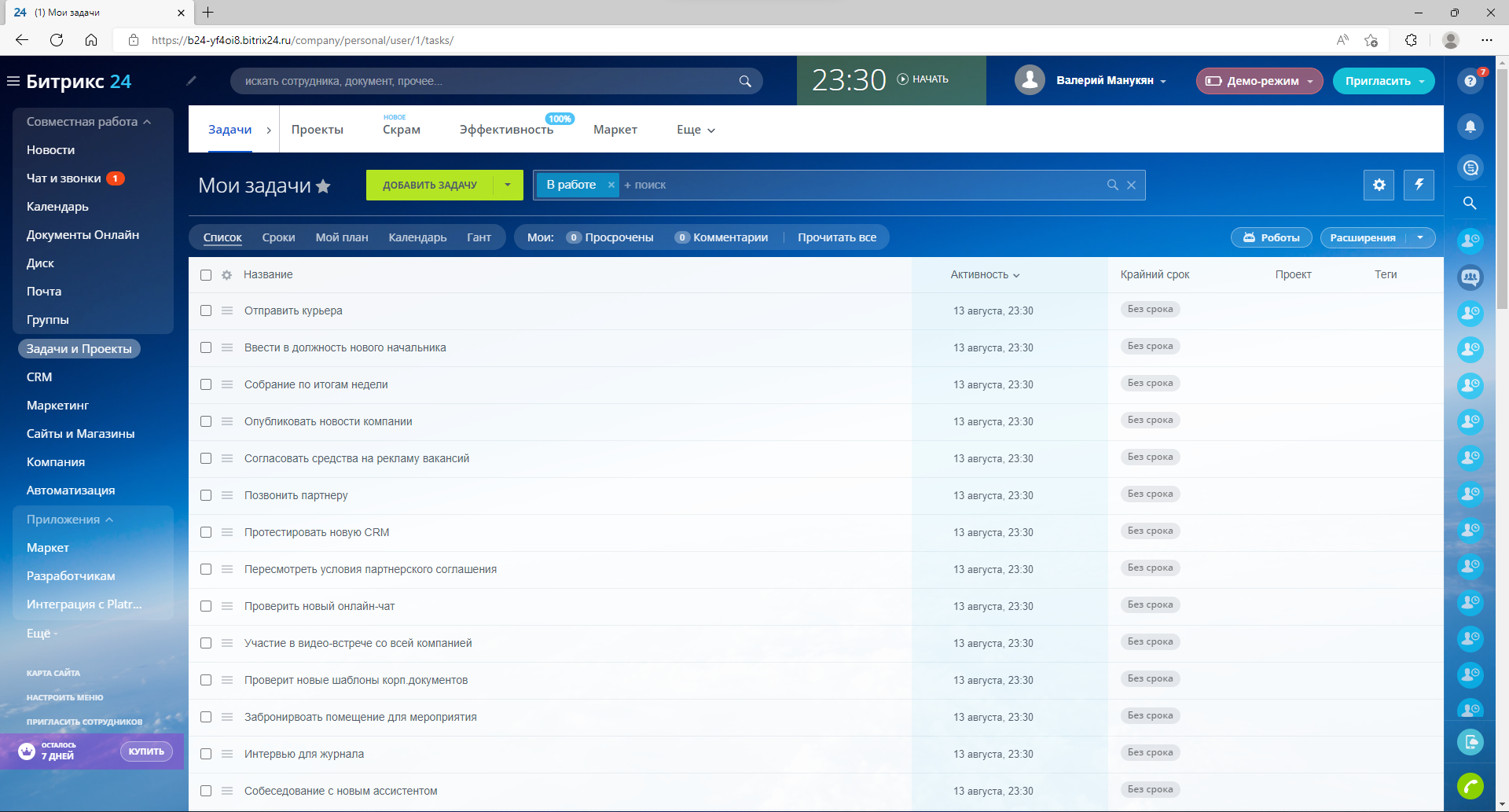 Поддерживается синхронизация задач, включая описание, сроки выполнения, ответственных и постановщиков.