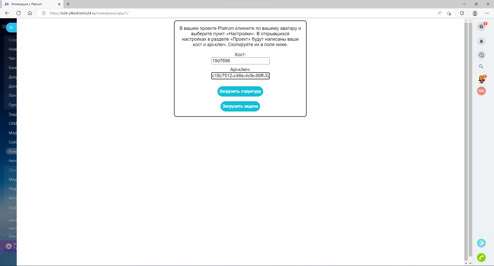Приложение позволяет быстро перенести данные из Platrum в Битрикс24.