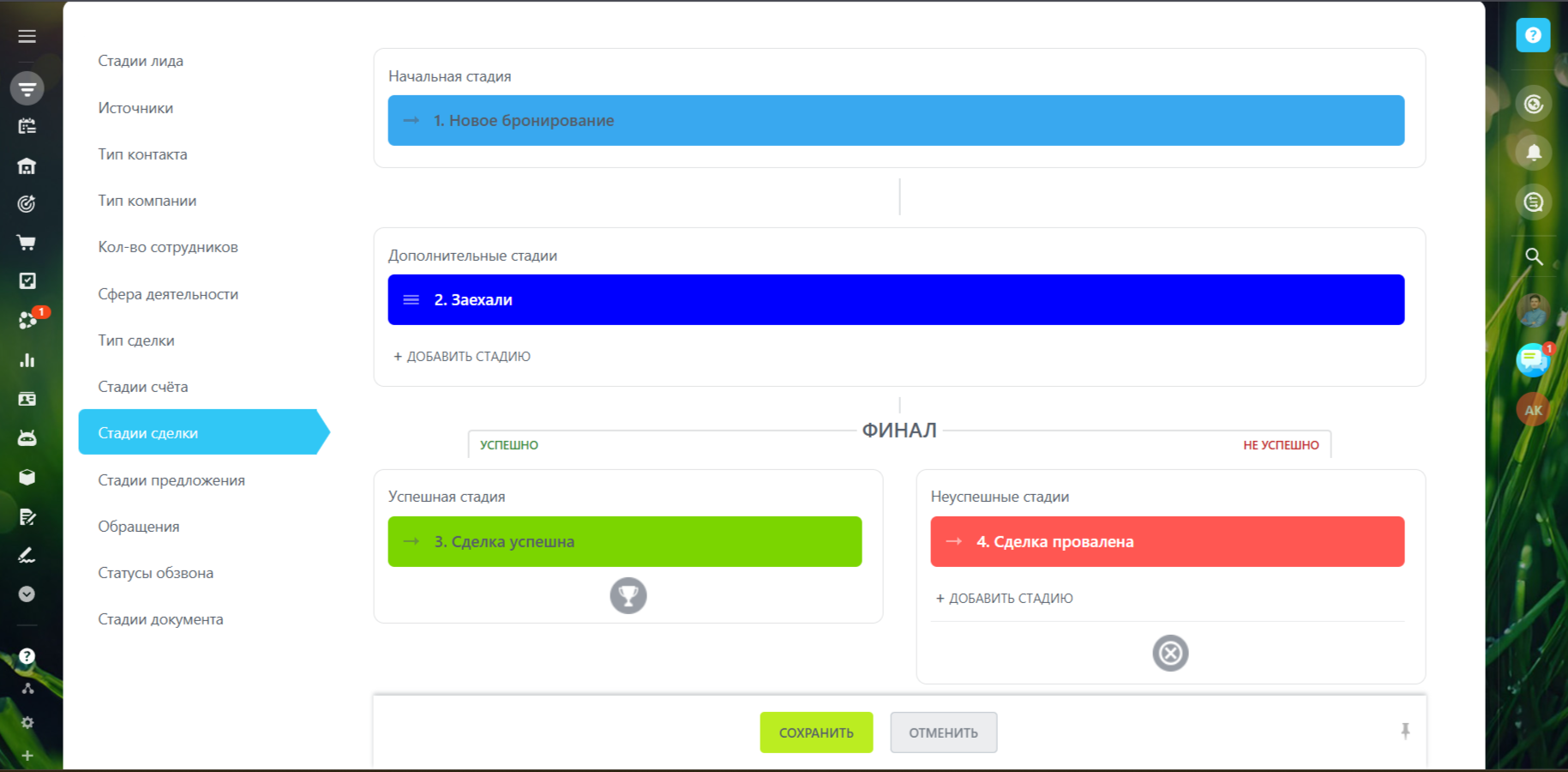 Мы уже настроили этапы, карточки сделок и контактов для того, чтобы вам было проще разобраться в системе.