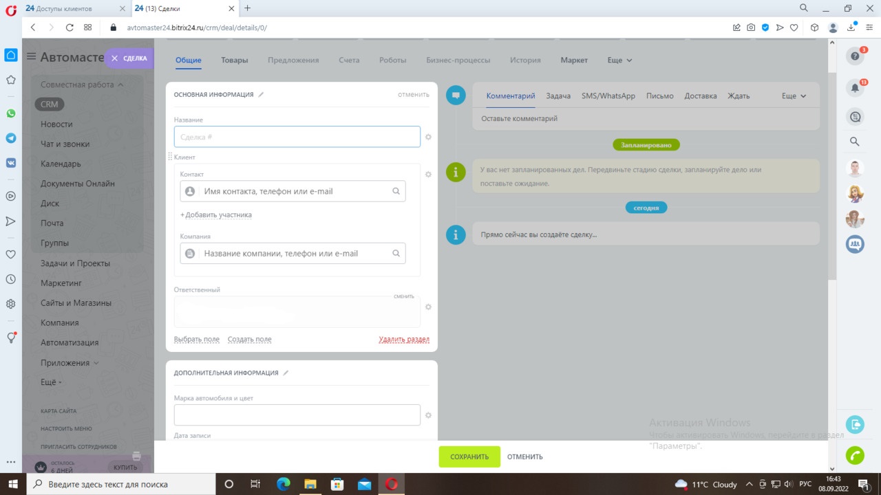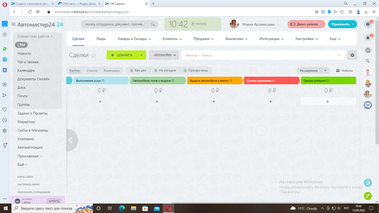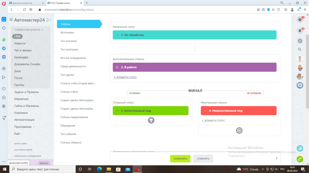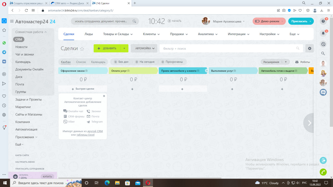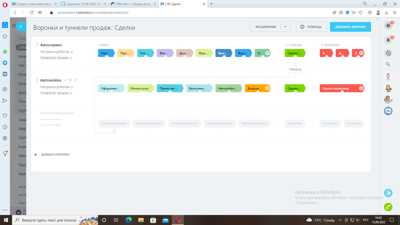 Мы настроили два направления сделок «Автомойка» и «Автосервис».