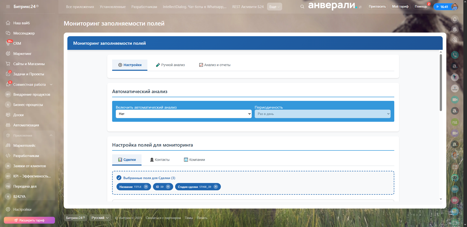 - Выбор полей для мониторинга по каждому типу сущности (сделки/контакты/компании).