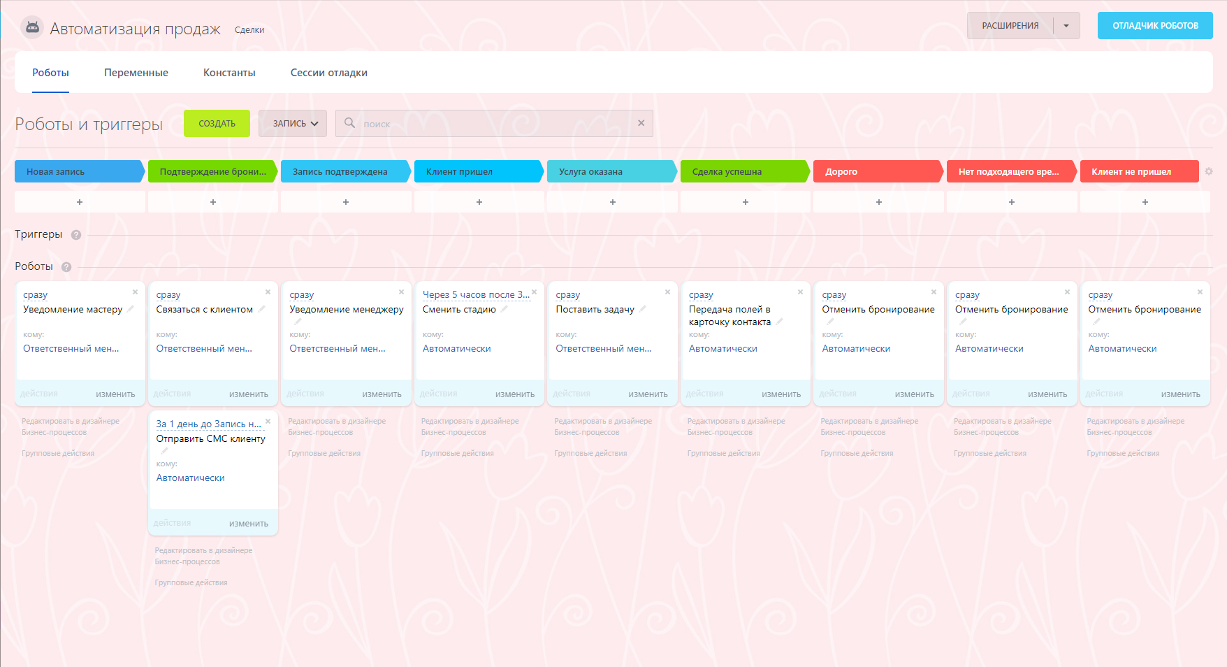 А роботы в CRM будут вам подсказывать, что нужно сделать на этапах воронки.