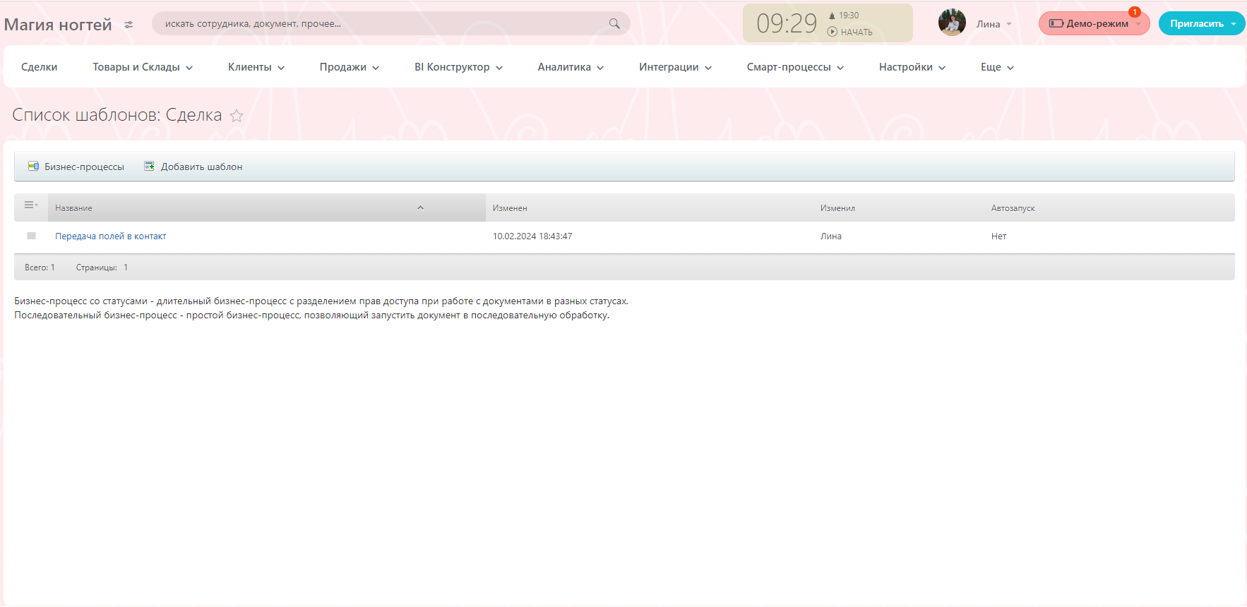 Данные, собранные в сделке, на стадии «Сделка успешна» с помощью бизнес-процесса копируются в карточку клиента.