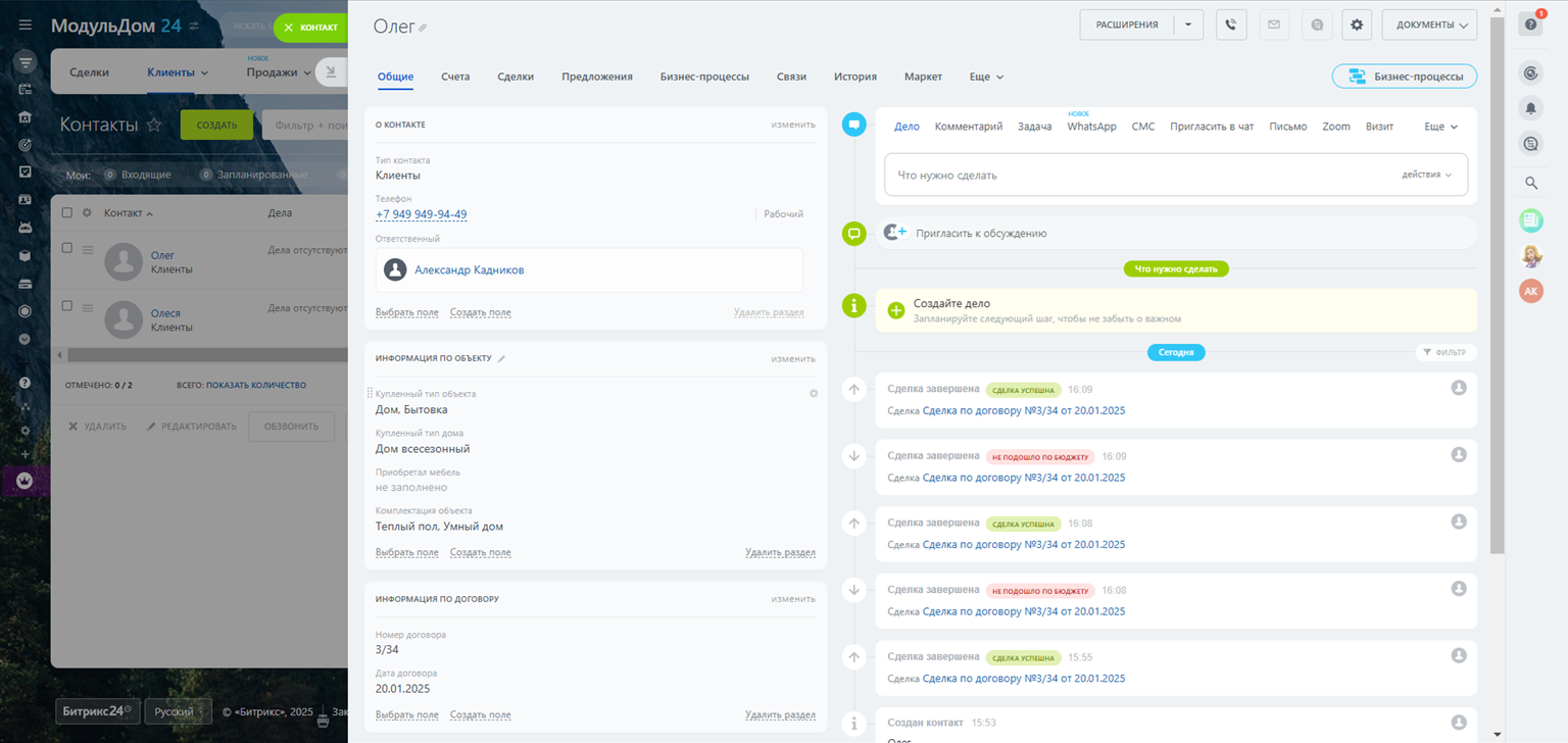 Это решение разработано для компаний, производящих и продающих модульные дома. Решение позволит выстроить эффективные продажи и обслуживание клиентов на каждом этапе, а уже настроенная автоматизация упростит рутинные процессы для менеджеров.
