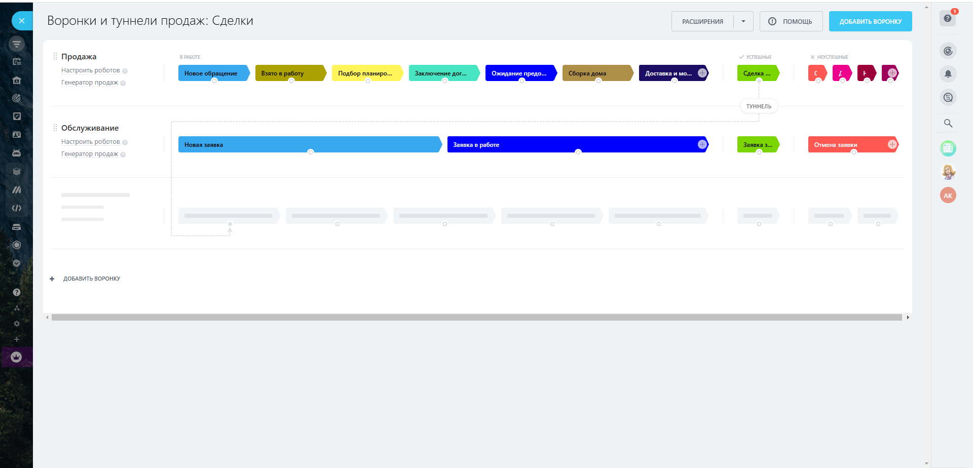 Мы создали несколько неуспешных стадий для удобства аналитики в дальнейшем, а именно: сделка провалена, дорого, не подошли варианты, не подошло по бюджету.