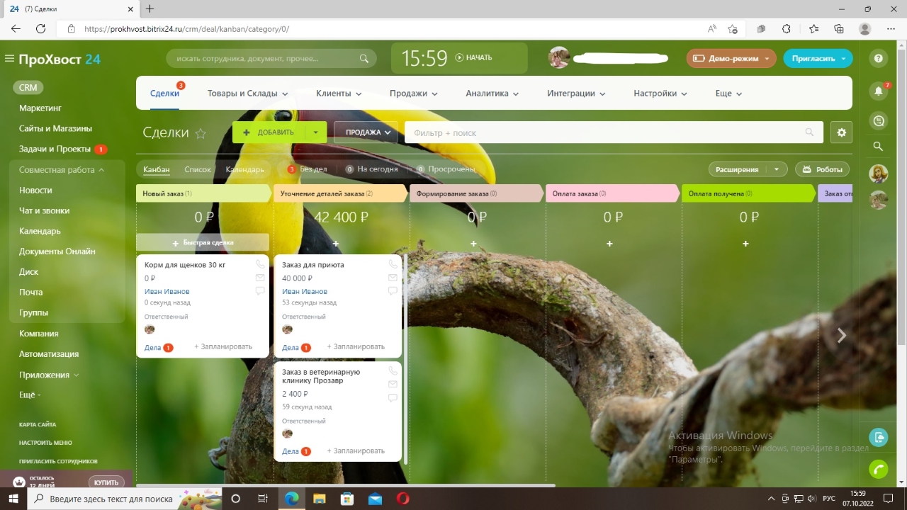 Готовое решение подойдет для зоомагазина, занимающего как продажей оптовой продукции для животных, так в розницу. С помощью нашего решения вы сможете быстро запустить работу в CRM, начать отслеживать все обращения клиентов и получить полный контроль над отделом продаж, сэкономив на услугах внедрения.