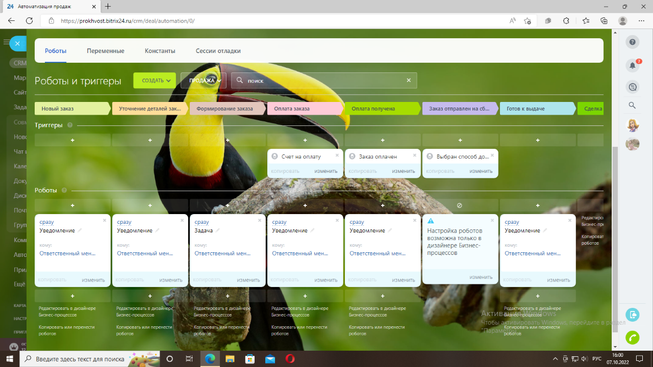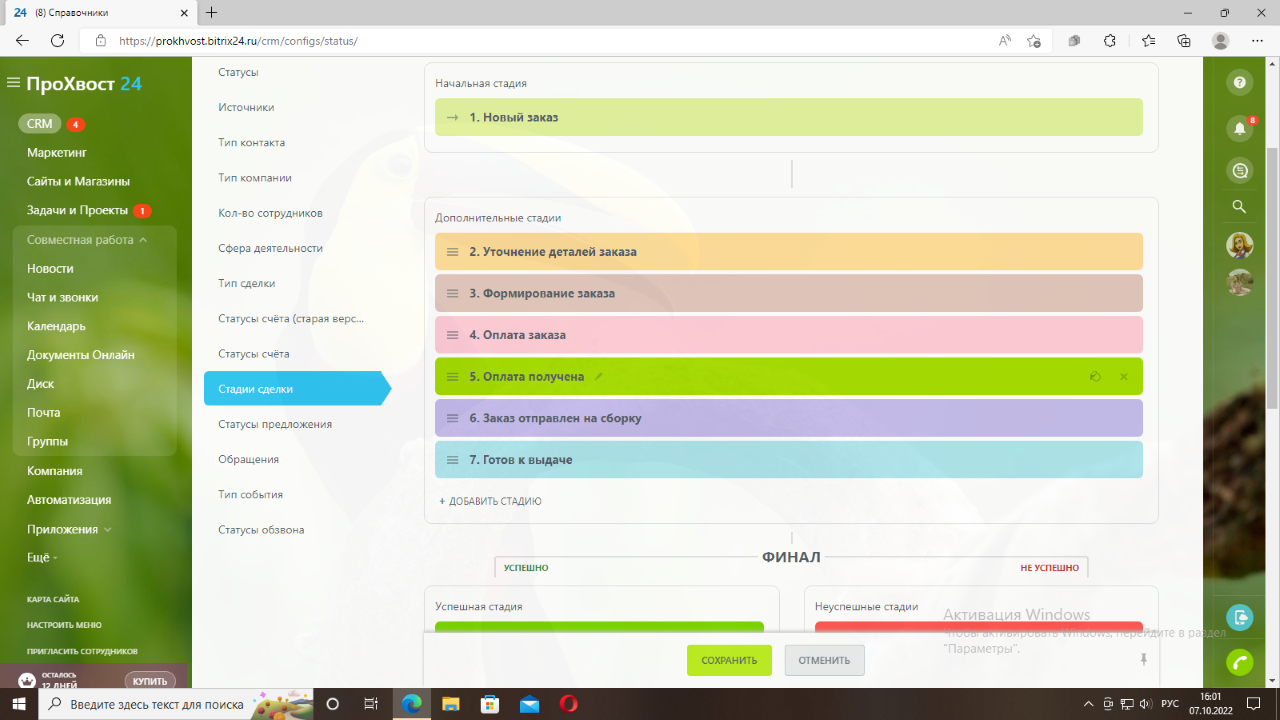 Оплата получена – ответственный менеджер уточняет у клиента способ доставки (заберет самостоятельно или нужна будет доставка), отмечает это в карточке. После чего, карточка автоматически переходит на следующую стадию.