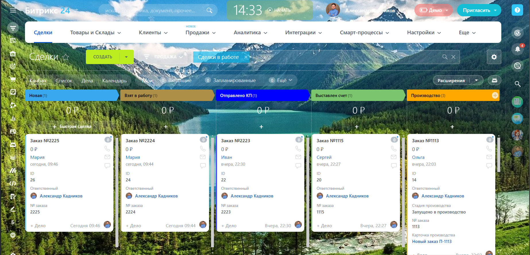 Новый заказ - На этой стадии создаются сделки в автоматическом режиме, когда сделки в воронке "Продажа" переходят на стадию производства. Система задает новый номер заказа, создавая его на основе основного, но добавляя букву П (Производство). Пример: П-1122. После чего переименовывает карточку в название типа Новый заказ П-1122. Также система сразу ставит наблюдателем по карточке менеджера, ответственного за заказ, чтобы он мог просматривать карточку.