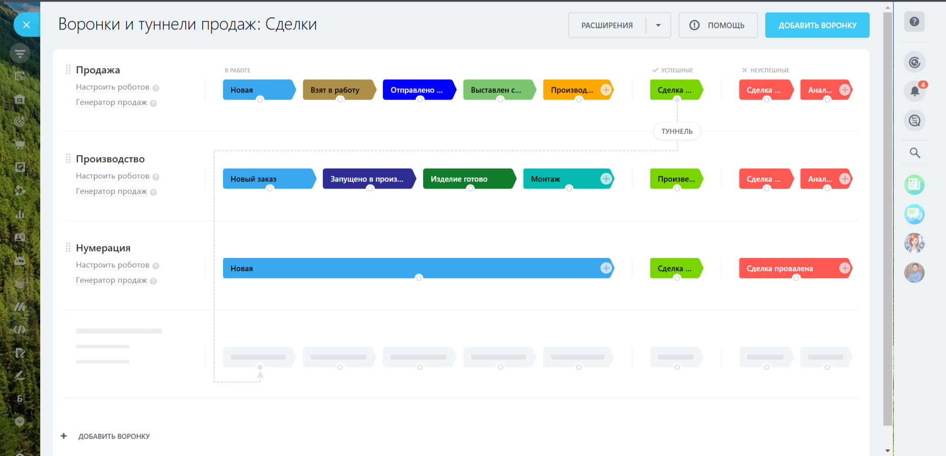 - Продажа (эта воронка для менеджеров, которые будут продавать ваш продукт)