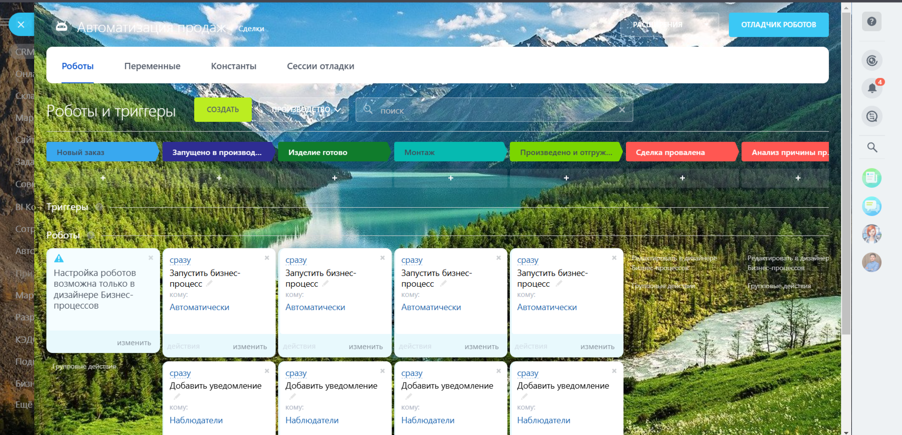 Решение предназначено для тарифа "Профессиональный" и выше, так как вся автоматизация написана на бизнес-процессах. Если вы решите установить решение на "Базовый" или "Стандартный" вы получите настроенные воронки и роботы уведомлений в воронке производства. А также преднастроенные карточки сделок и созданные поля.