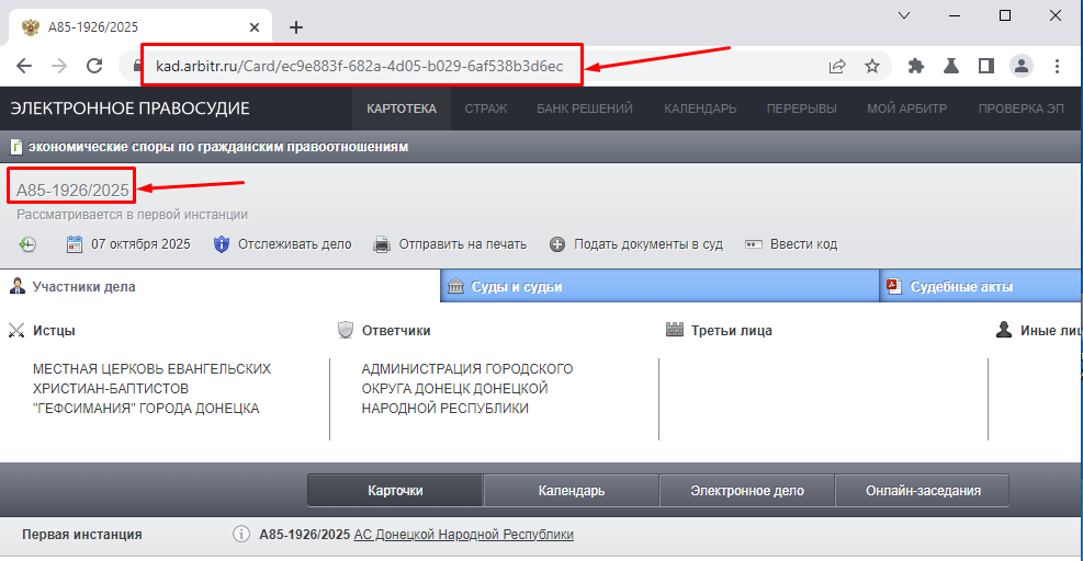 Откройте нужное дело на сайте арбитражного суда. Скопируйте в эти поля ссылку на дело и номер дела.