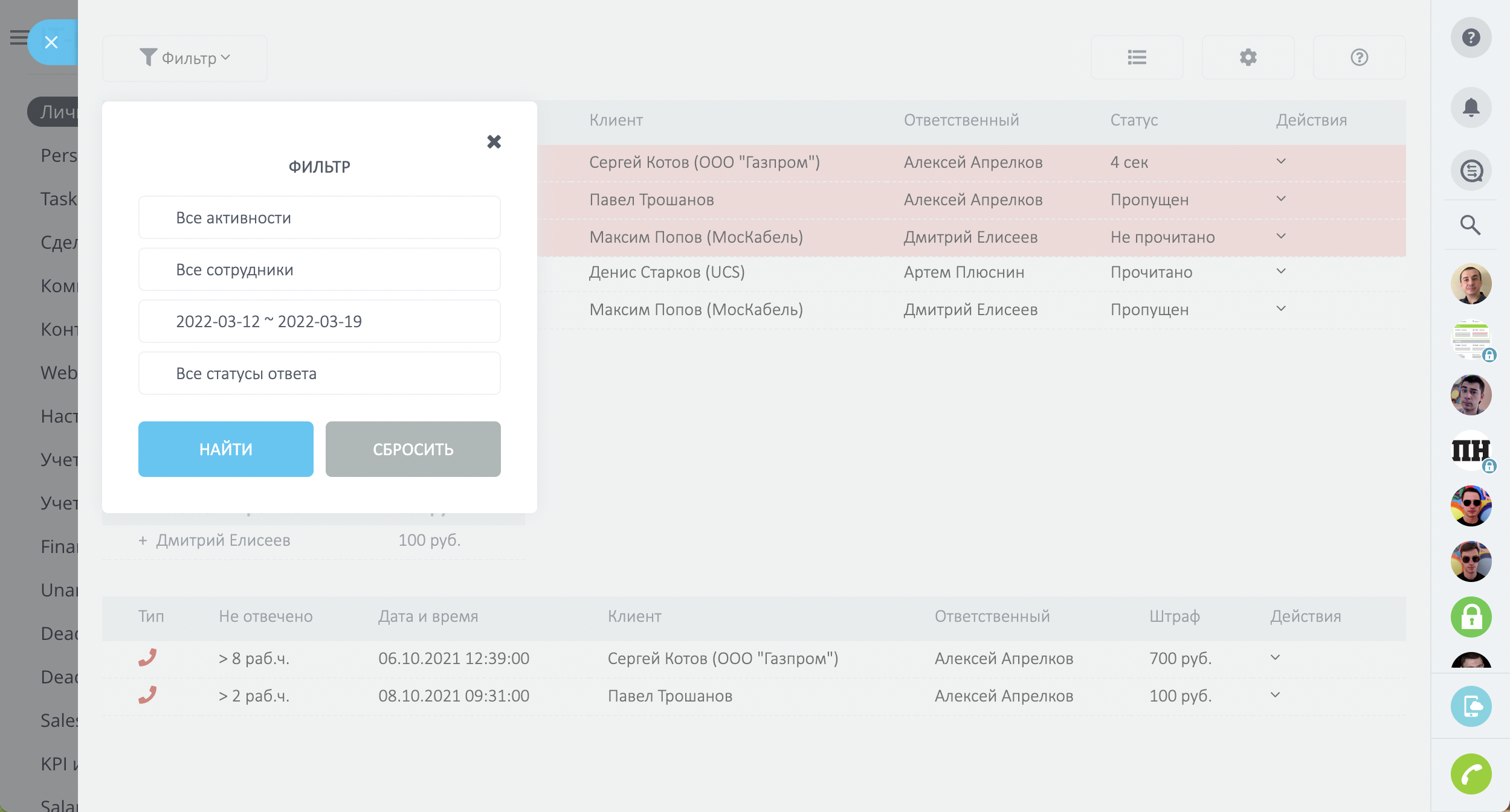 - Сотрудники тоже видят свои неотвеченные звонки и письма, видят штрафы за них. И это мотивирует их оперативно отвечать Клиентам.