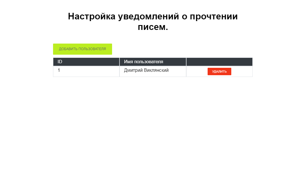 Данное приложение предназначено для сообщения о том, что его письмо было прочитано клиентом.
