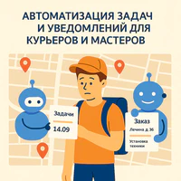 Сообщения курьерам, мастерам, сервисным - центрам по доставкам, встречам, записям с адресами клиентов Сгруппирует в сообщение дату приезда, адрес, предмет заказа на выезд