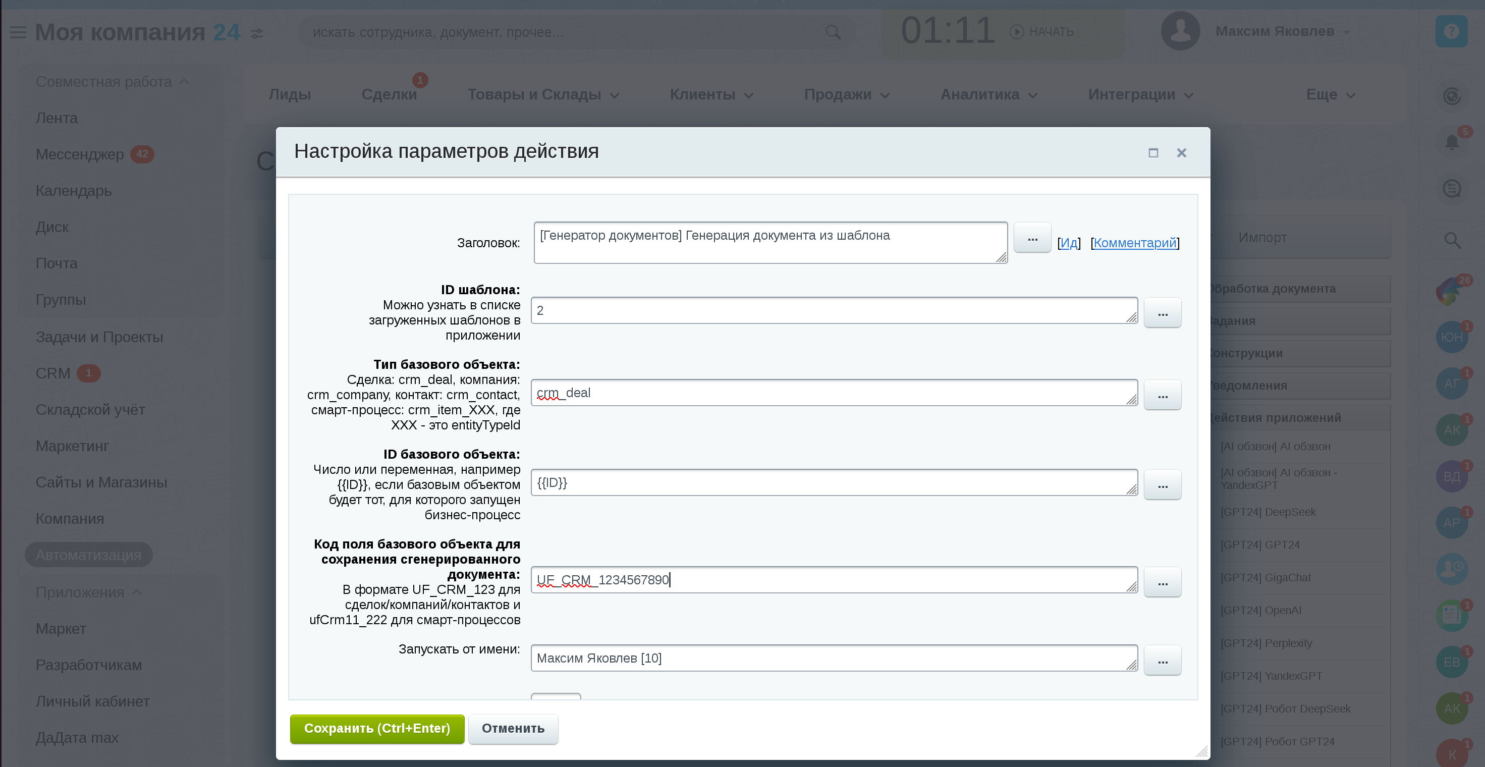- сохраняйте документ в специальные поля Битрикс24 для дальнейшего использования