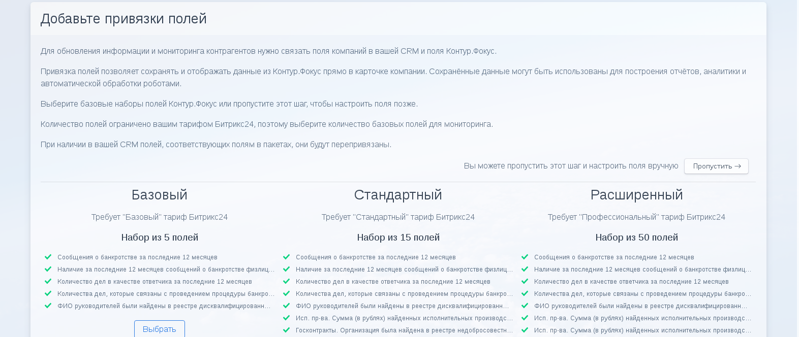Вы можете как выбрать предварительно настроенные наборы полей, так и полностью настроить связку вручную!