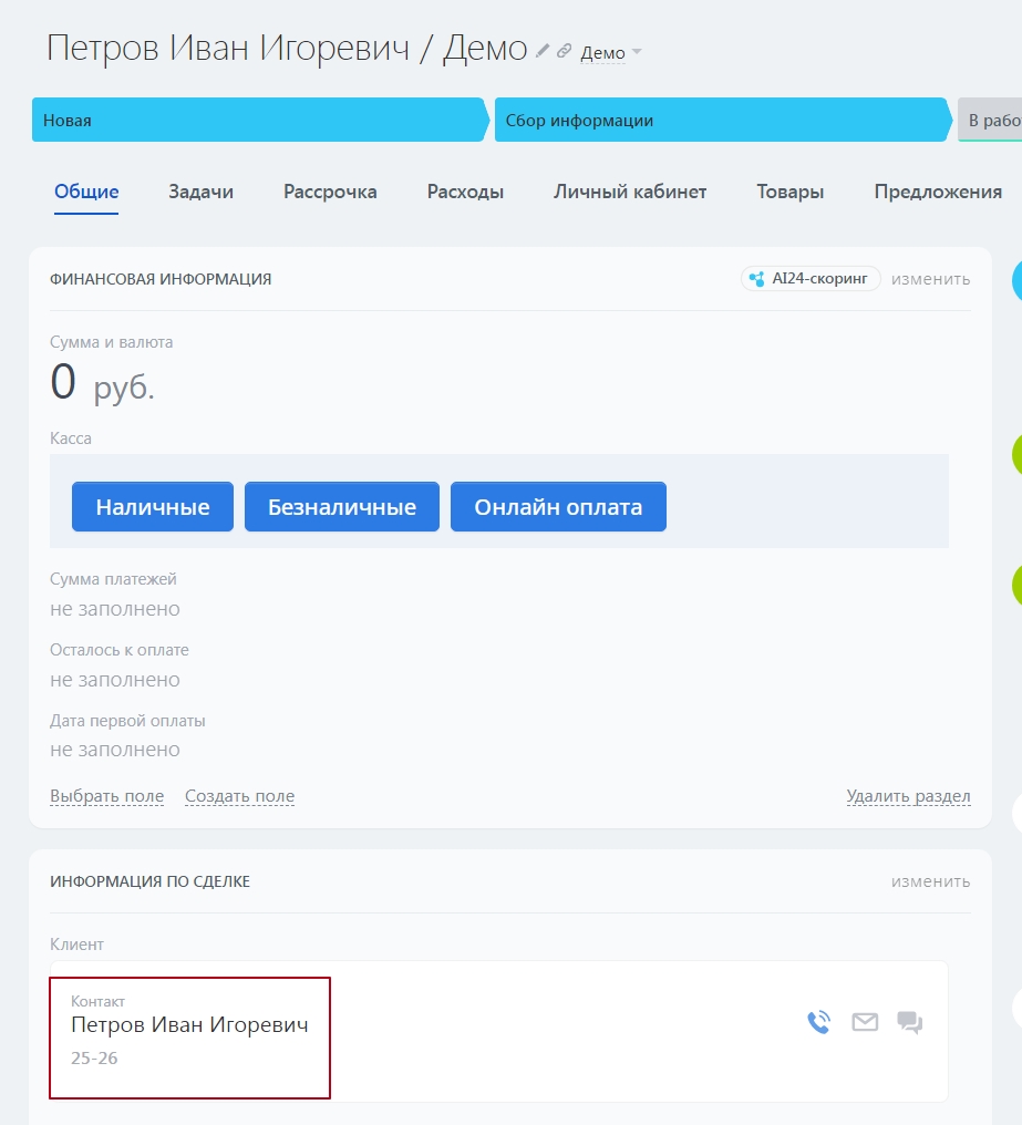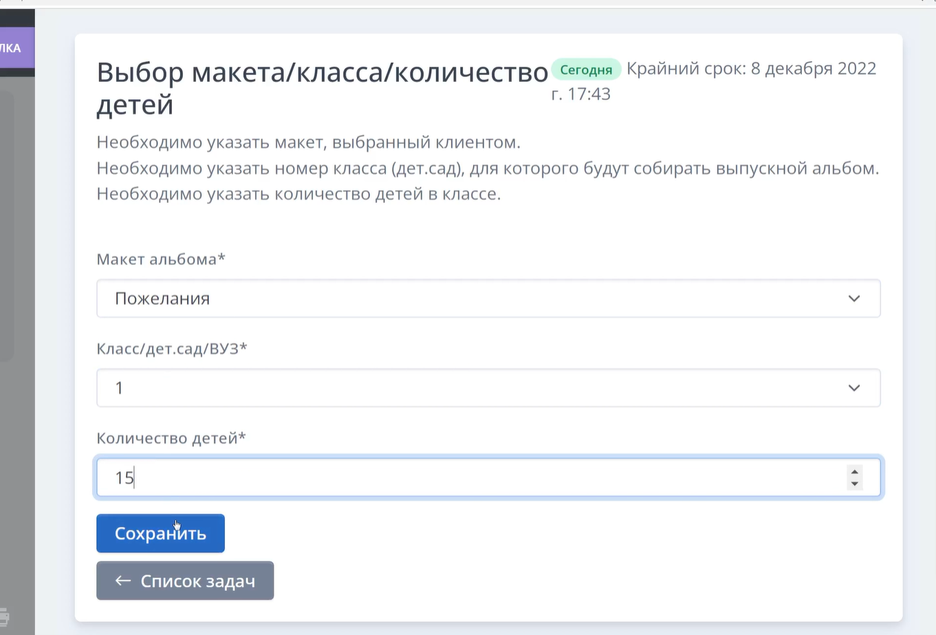 Например, вы агентство недвижимости, и менеджер должен узнать и сохранить «площадь квартиры». В задаче появится специальное поле, куда он должен ввести результаты.