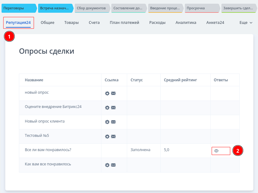 - Настройте в воронке продаж стадию: Получение обратной связи