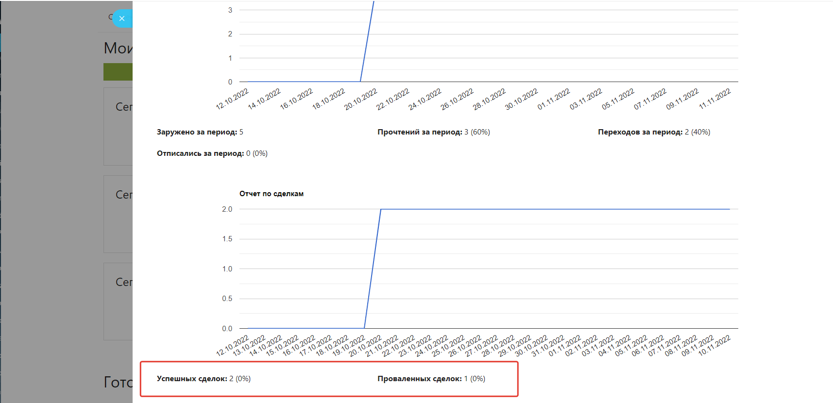 Результат рассылки в разрезе успешных и неуспешных Сделок: