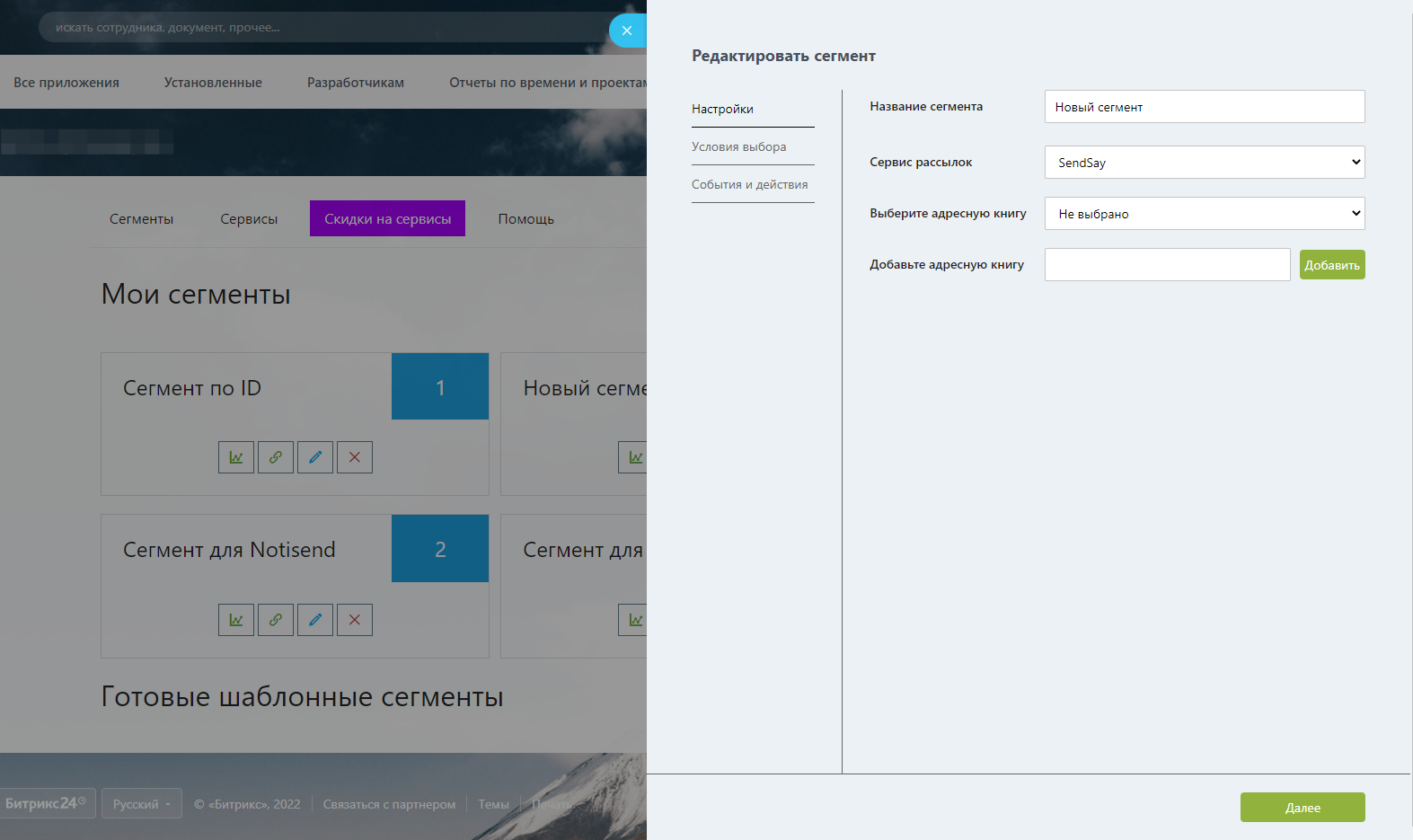 Интеграция с сервисами рассылки: Unisender, DashaMail, Sendsay, Mailganer, NotiSend, Rusender, SendPulse. Сегментация базы лидов и контактов, автоматическая синхронизация, добавление/удаление контактов, обратная связь от рассылок, статистика и результат в выигрышных/проигрышных сделках, RFM-матрица.