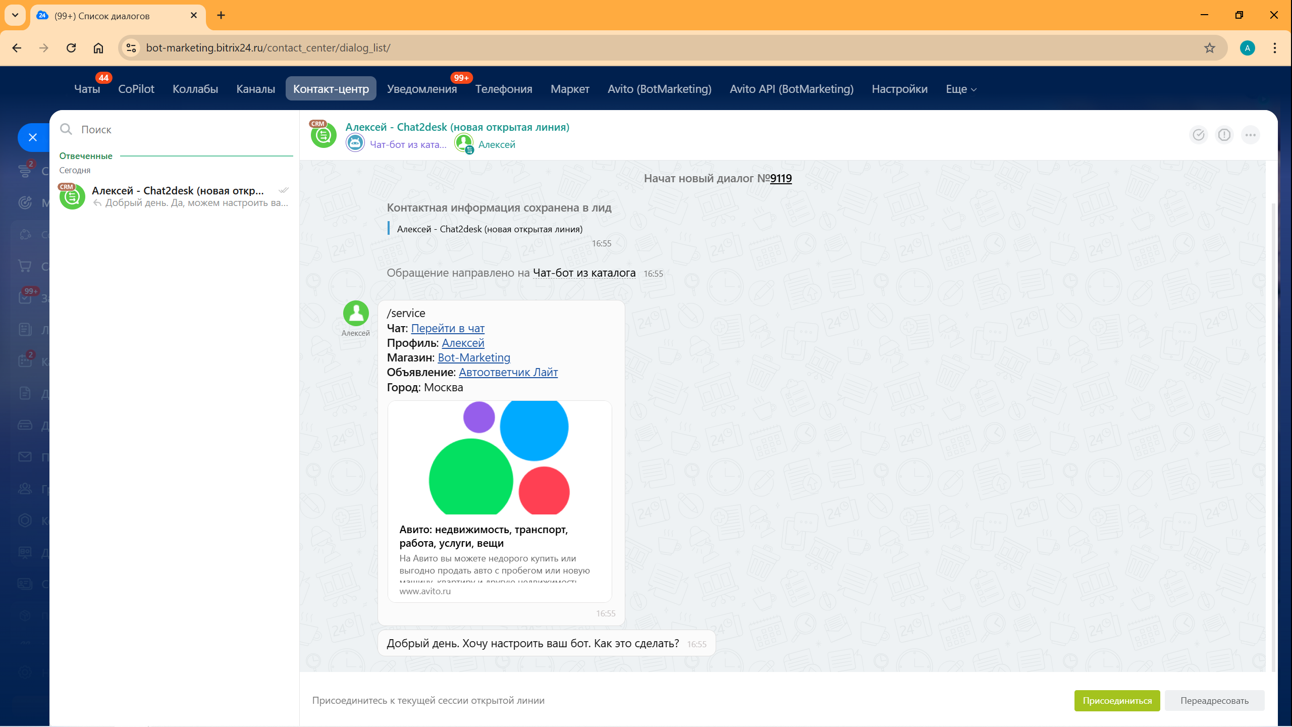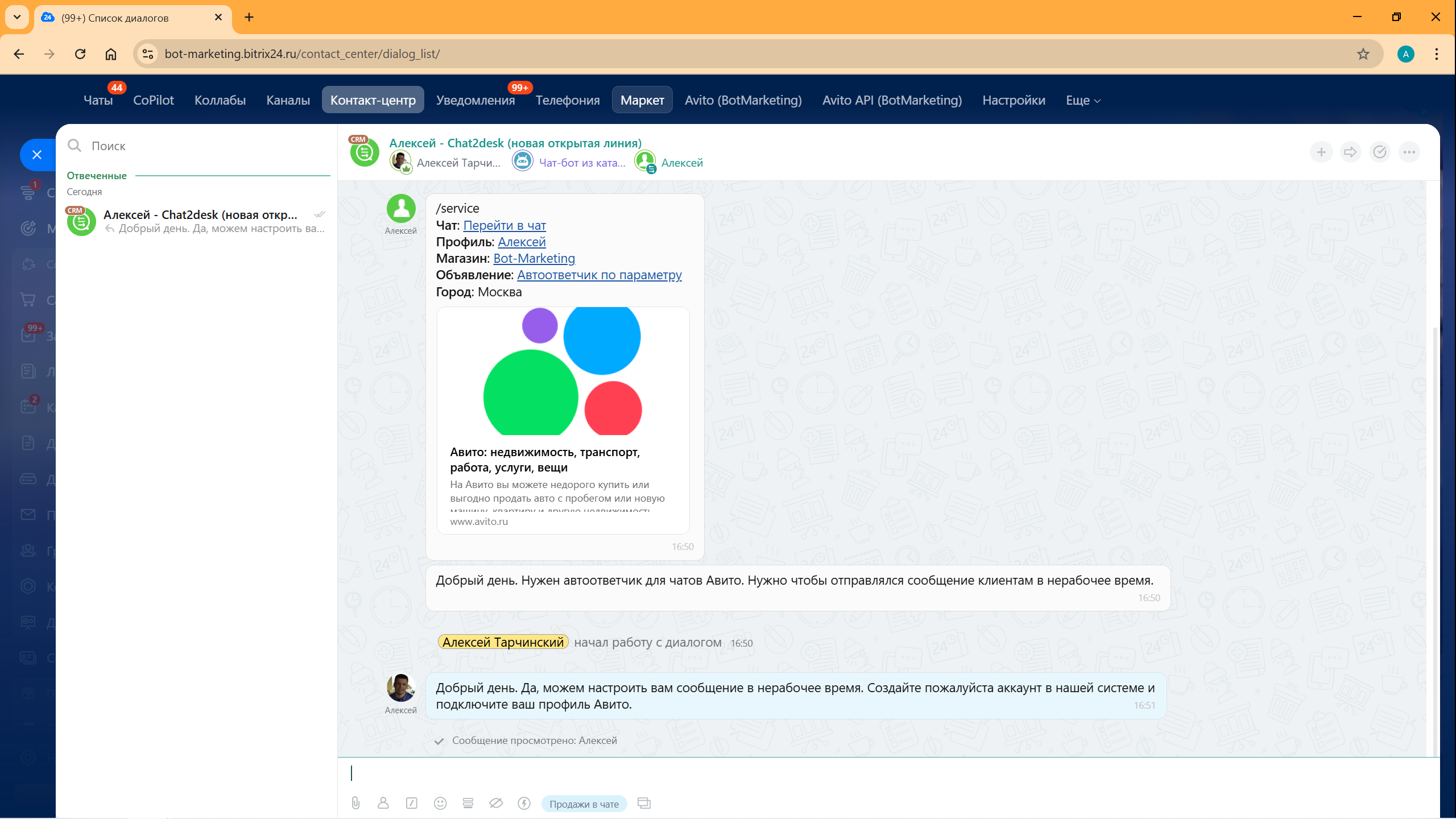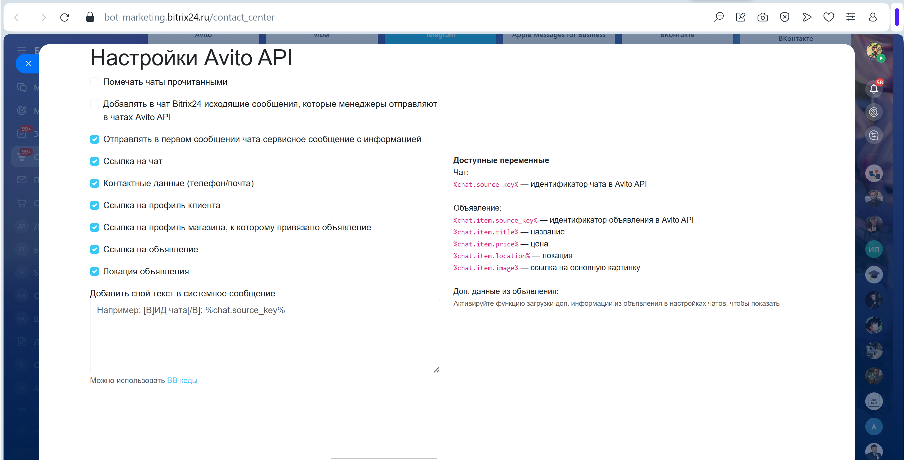 Авито API для открытых линий Битрикс24