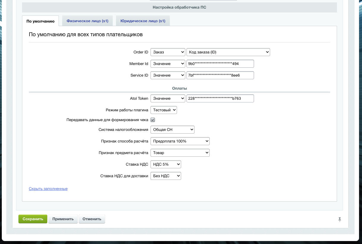 - Признак предмета расчета - по умолчанию «Товар», для доставки «Услуга».