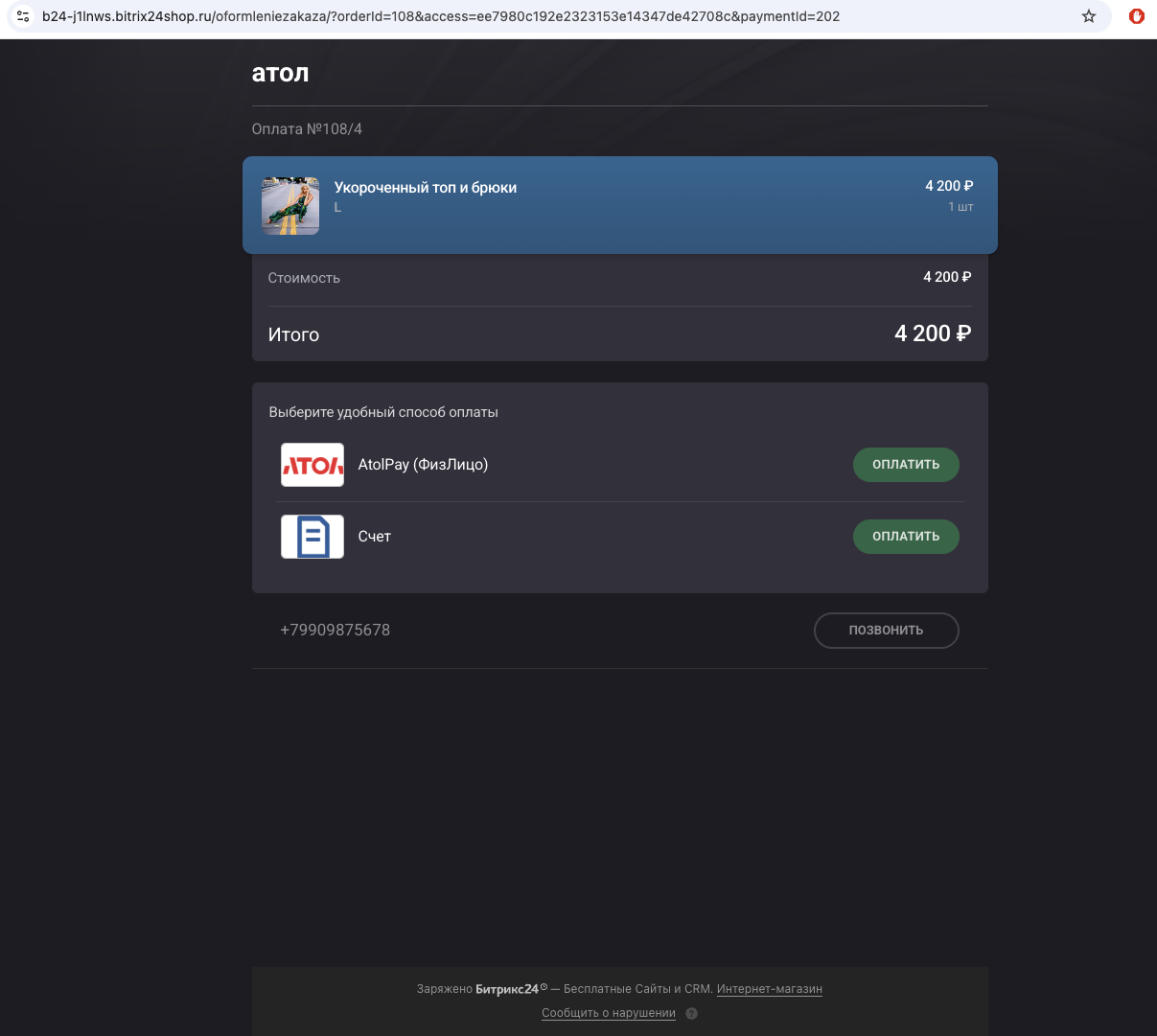 - Прием платежей через веб-форму и в интернет-магазине Bitrix24.