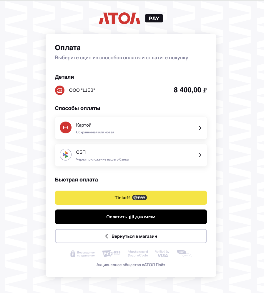 Функционал модуля АТОЛ Pay: