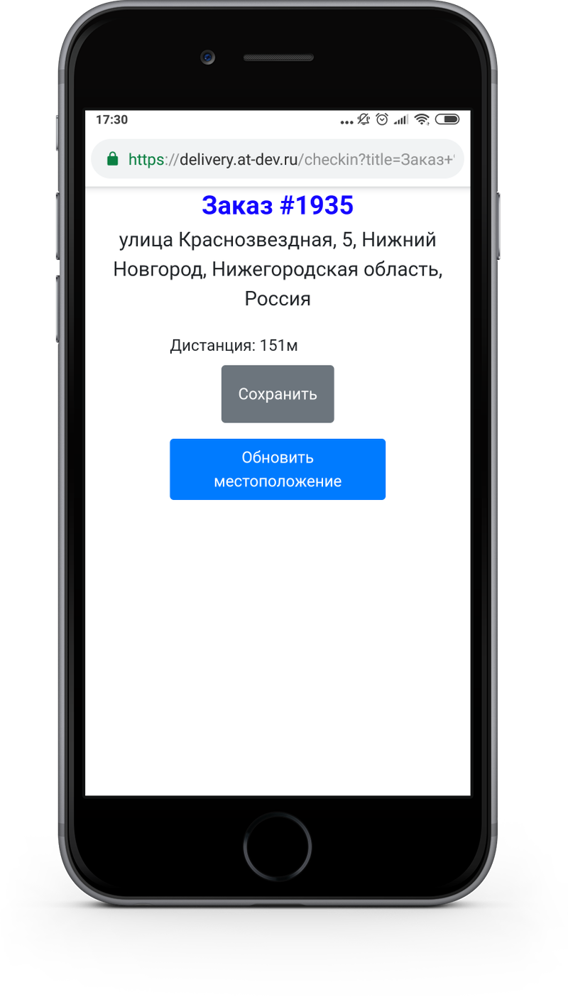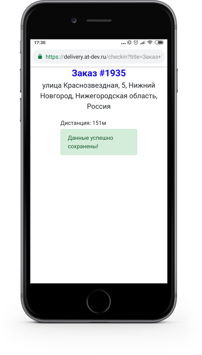 Для фиксации успешного завершения доставки используется функция check-in (отметиться по GPS). Для этого курьер (экспедитор)