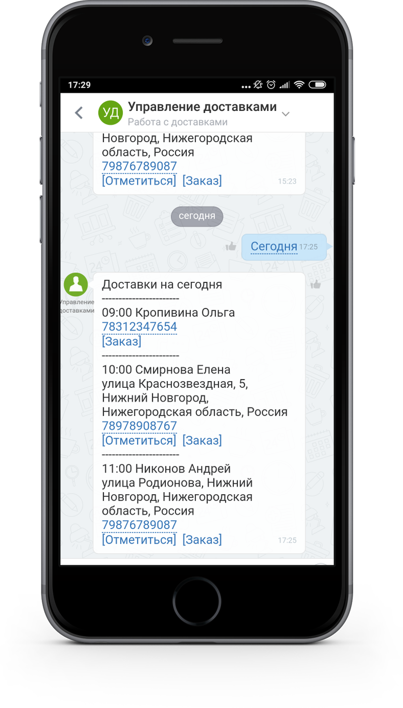 Для фиксации фактического завершения доставки, водители (экспедиторы) используют чат-бот Управление доставкой