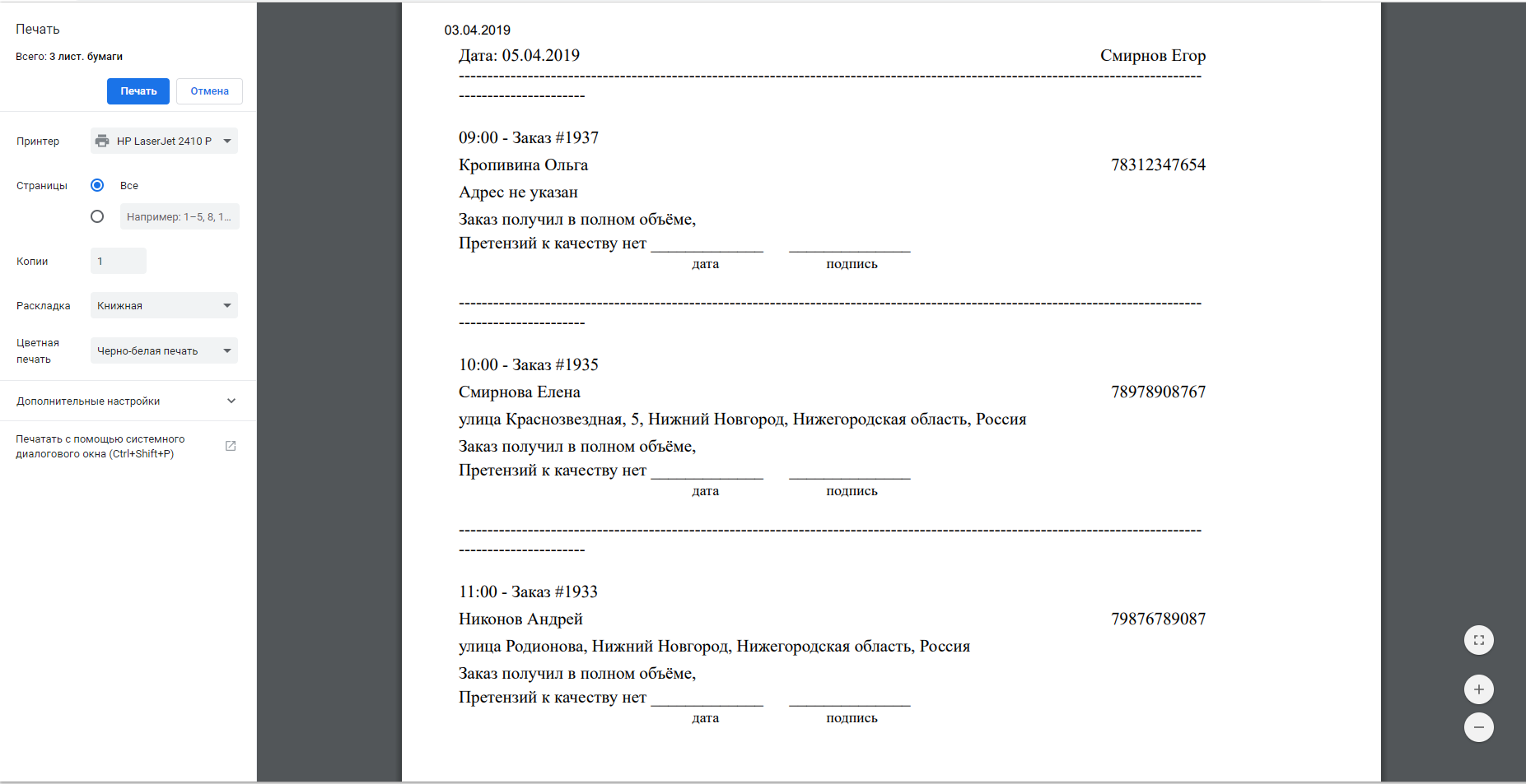 В любое время вы можете обновить страницу приложения и наблюдать за фактическим исполнением доставок.