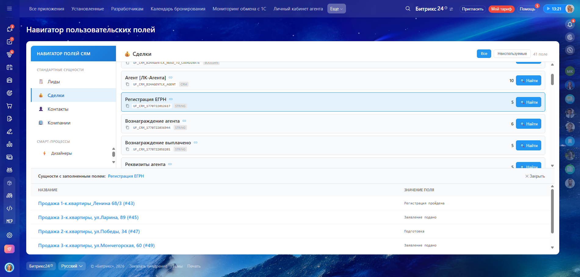 Просмотр и анализ пользовательских полей в CRM Битрикс24