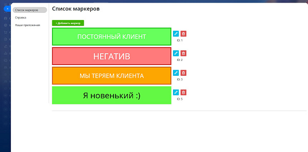 - Список маркеров общий для всей CRM.