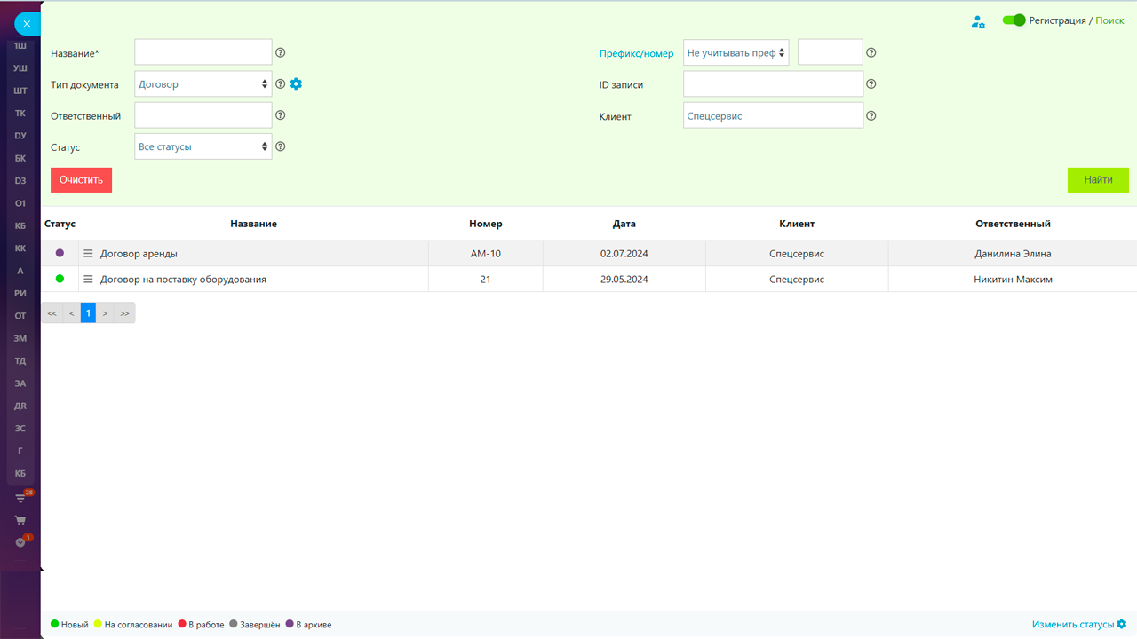 - Поиск документов по типам и по Клиентам