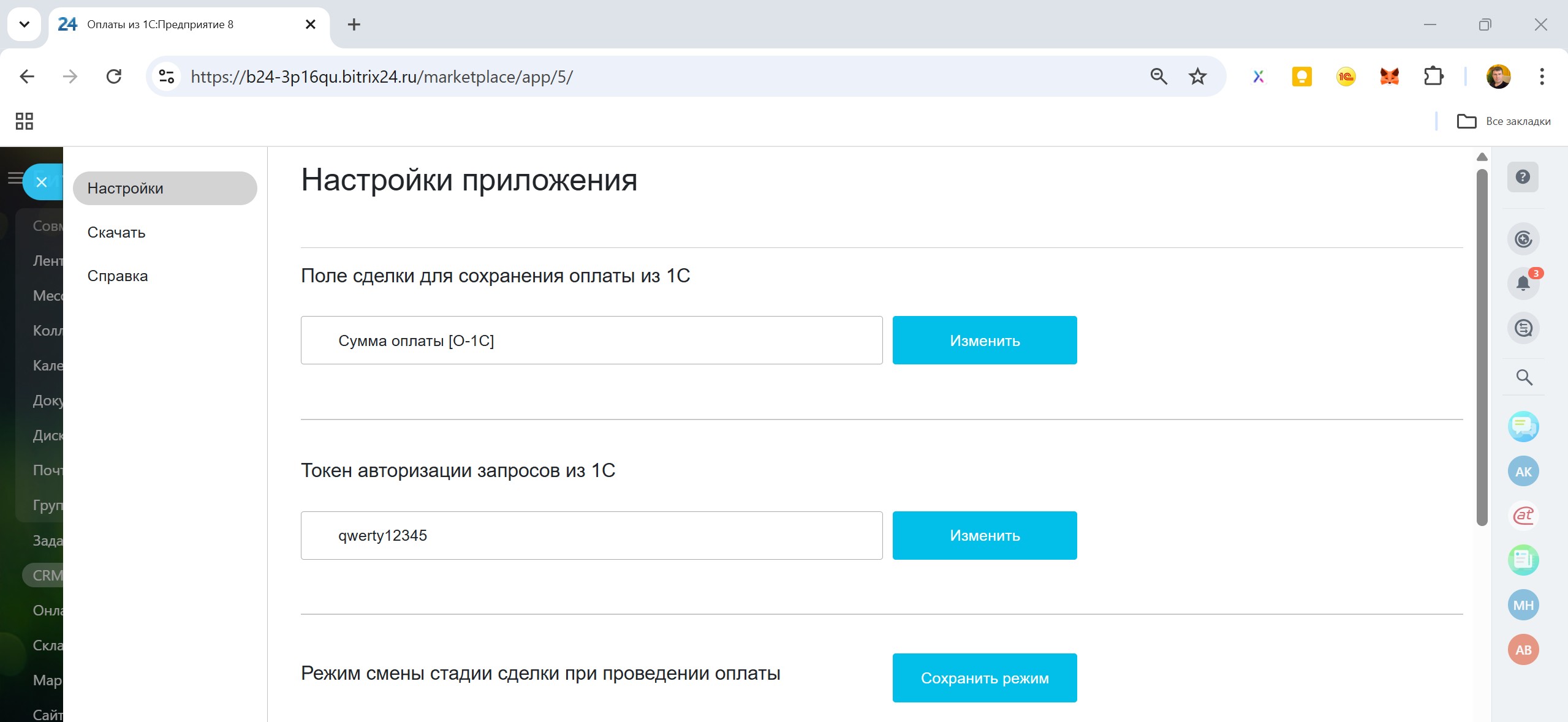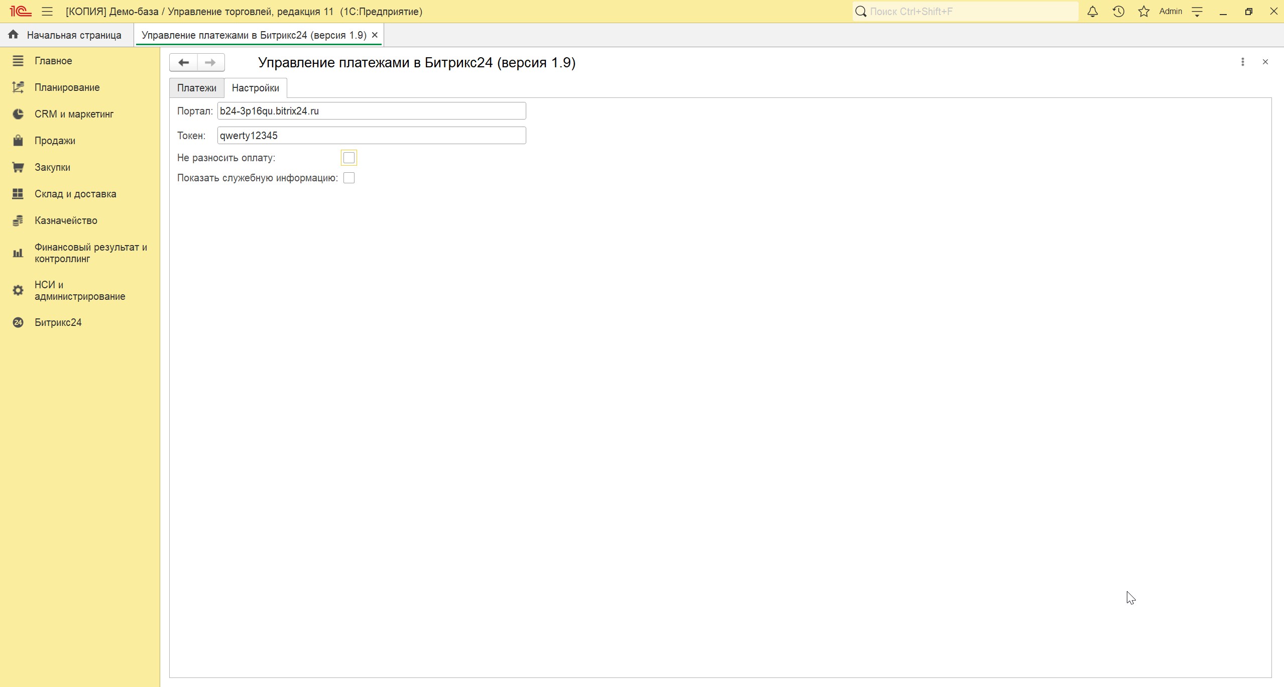 Приложение Оплата из 1С:Предприятие 8 позволяет транслировать поступление денежных средств из вашей учетной программы в сделки Битрикс24.
