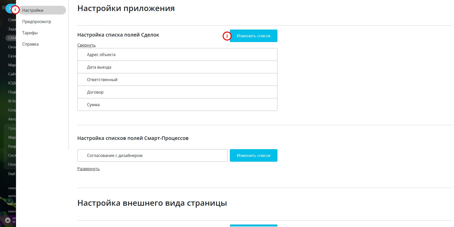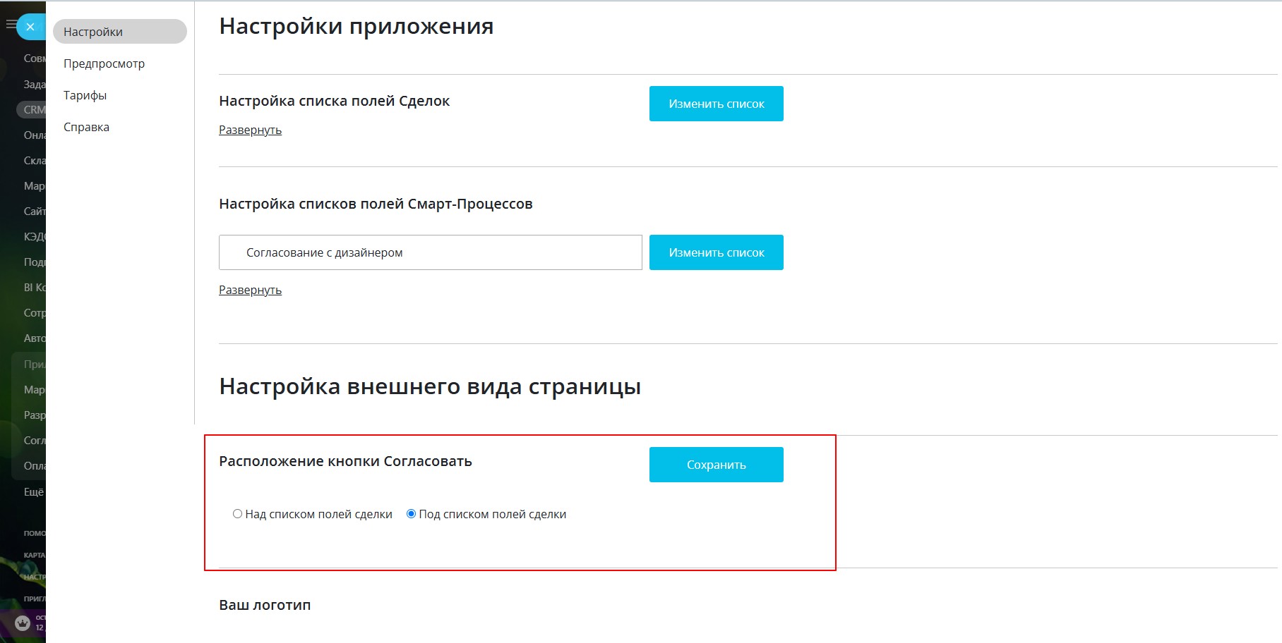 2. Настройка полей вывода на страницу согласования для каждой воронки или для каждого смарт-процесса.