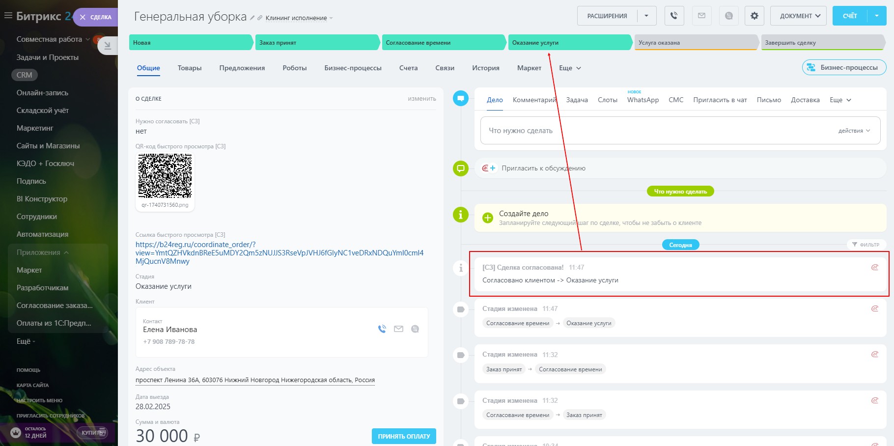 Приложение Согласование заказа клиентом даст вам инструмент по согласованию сделки или смарт-процесса и отображению для клиента данных по его сделке (заказу) или по смарт-процессу.