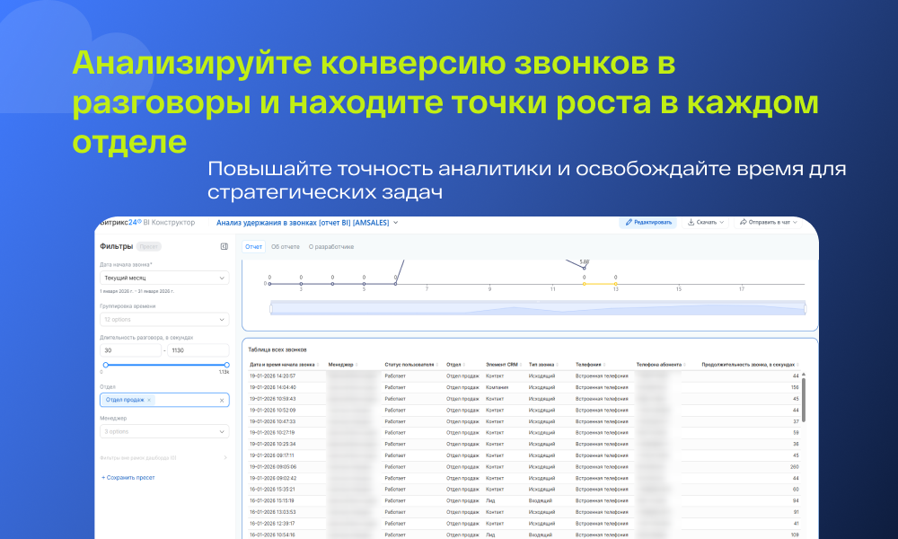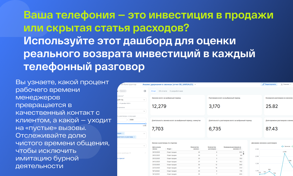 Задачи, которые решает отчет:Контроль качества трафика: Определение реальной доли полезных разговоров в общем объеме звонков.
