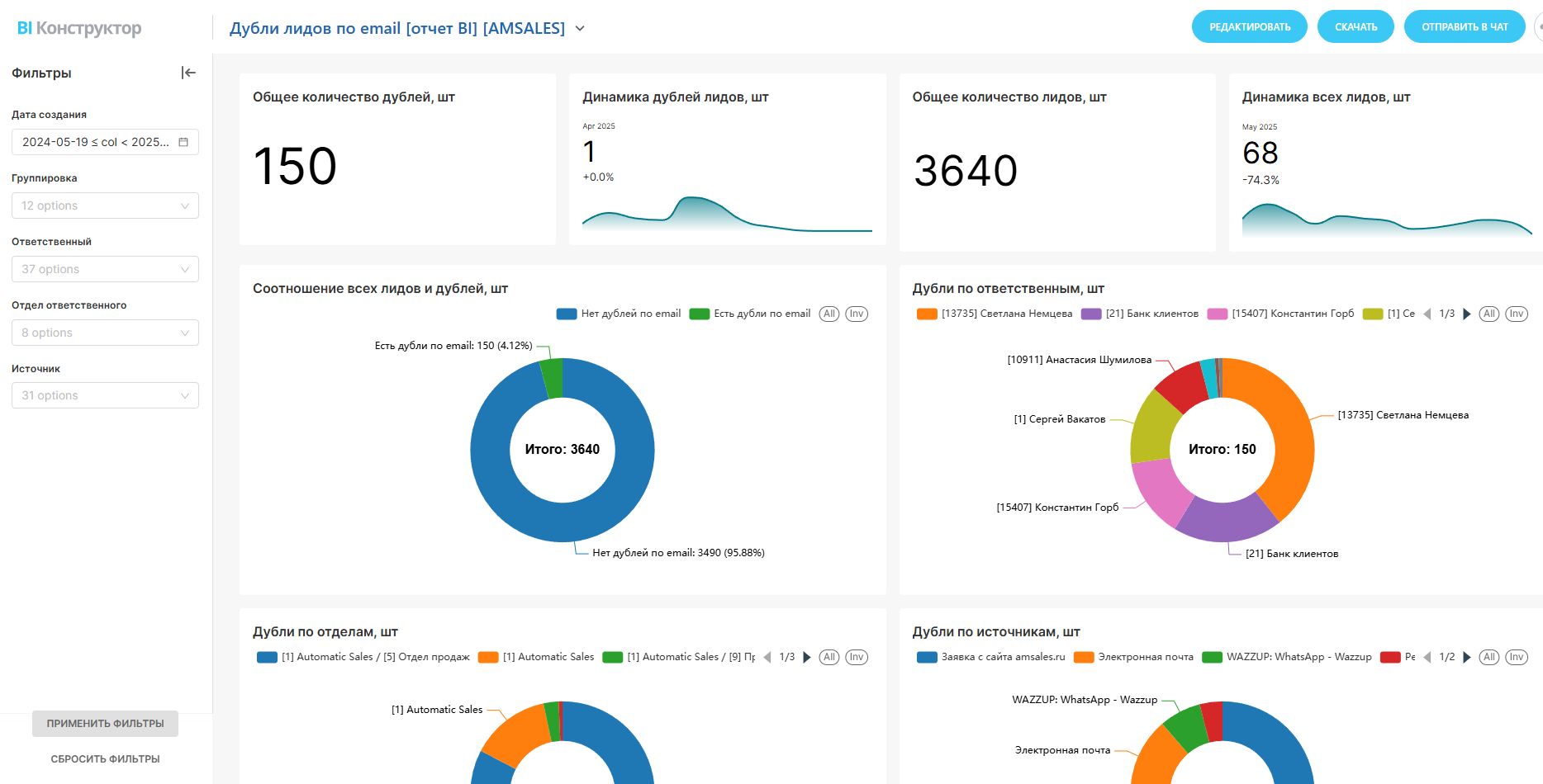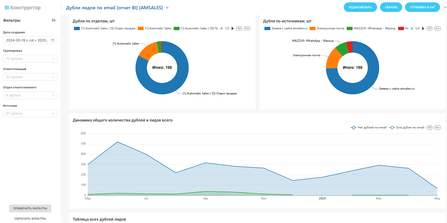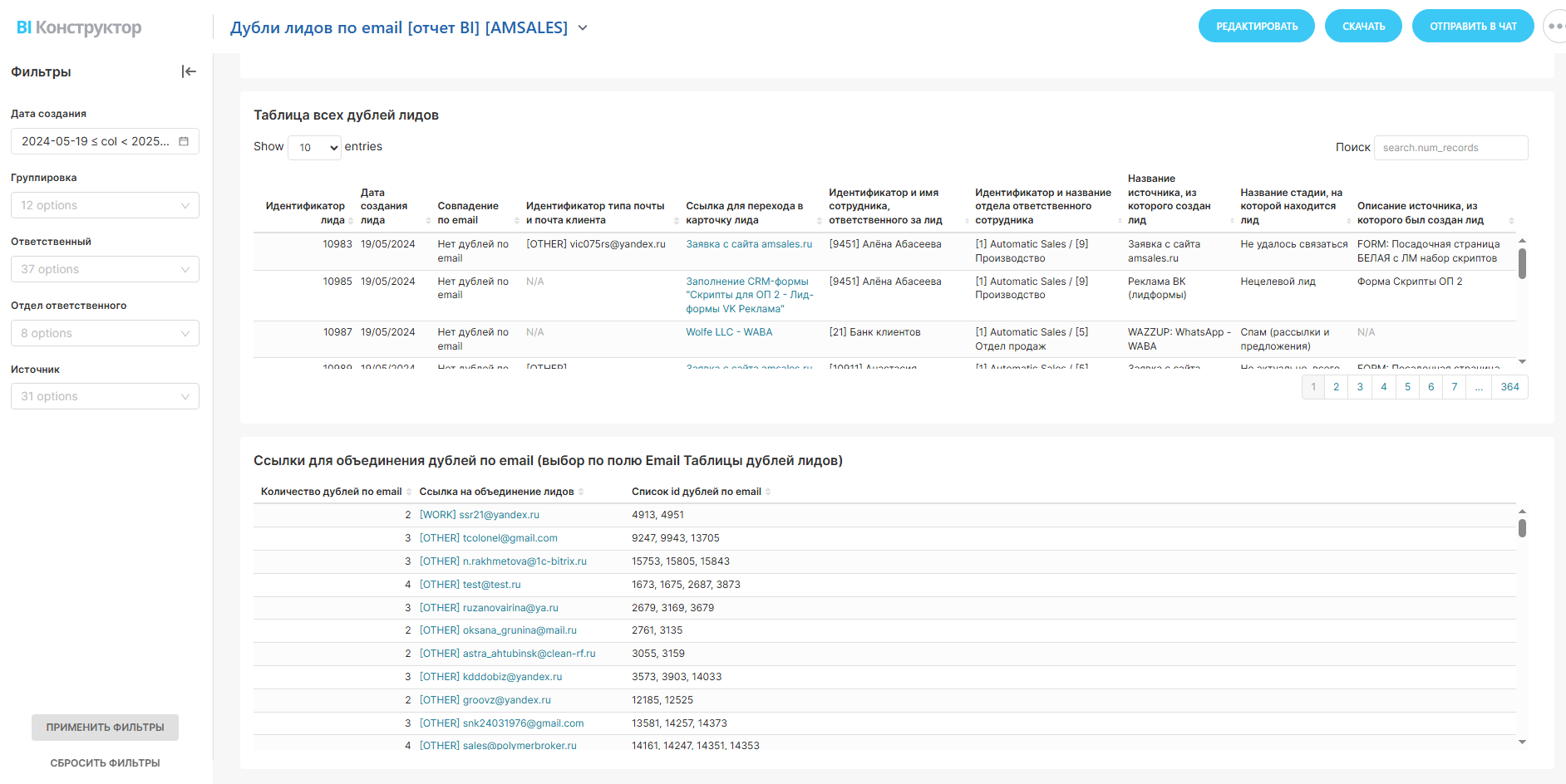 BI-отчет: Дубли лидов по email в CRM