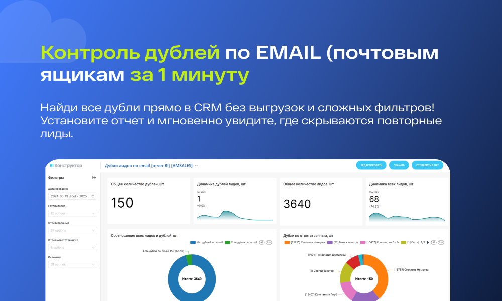 С помощью отчета "BI-отчет: Дубли лидов по email в CRM" вы сможете:
