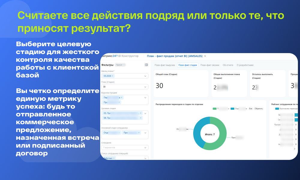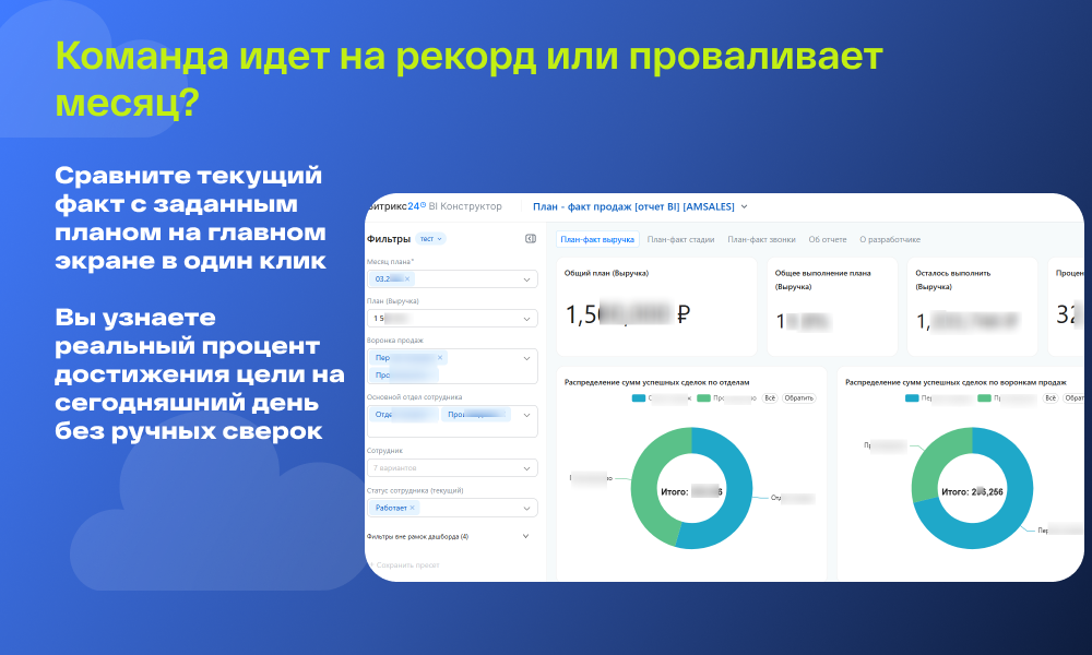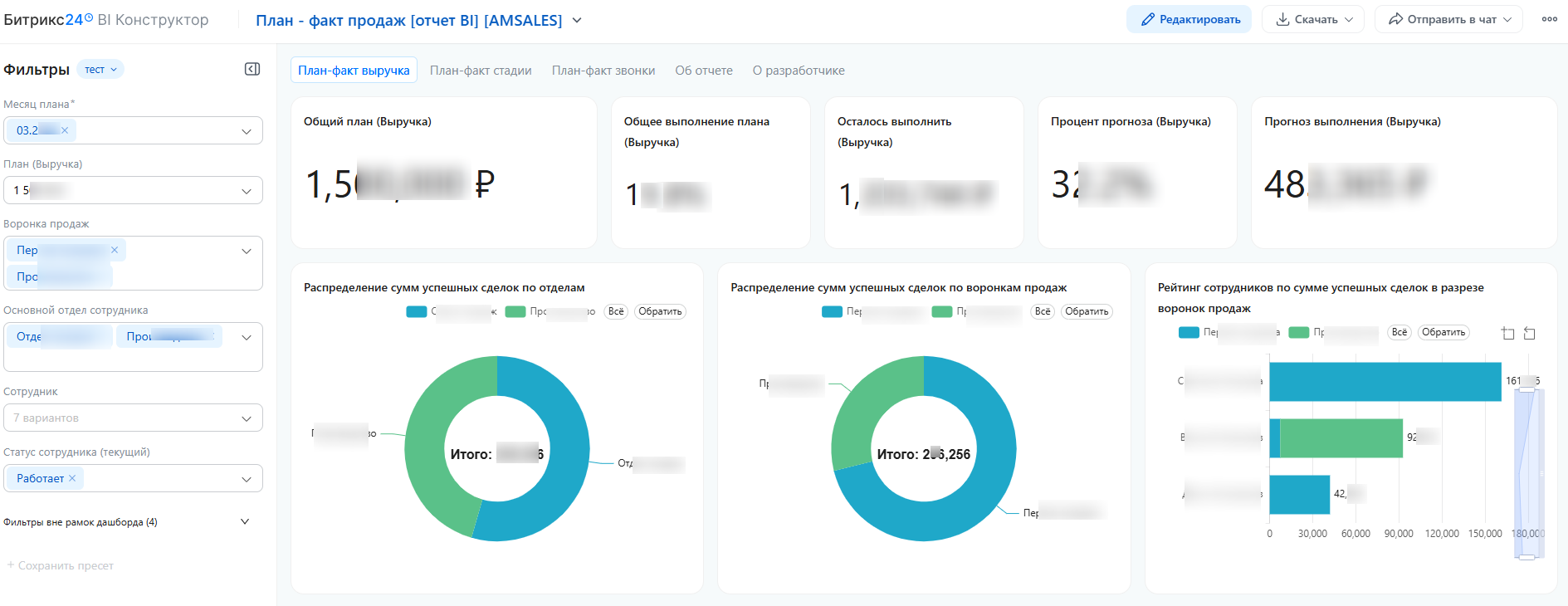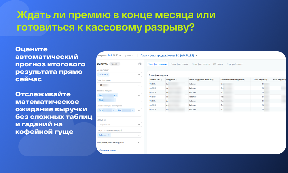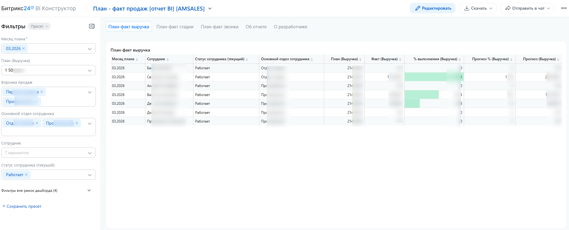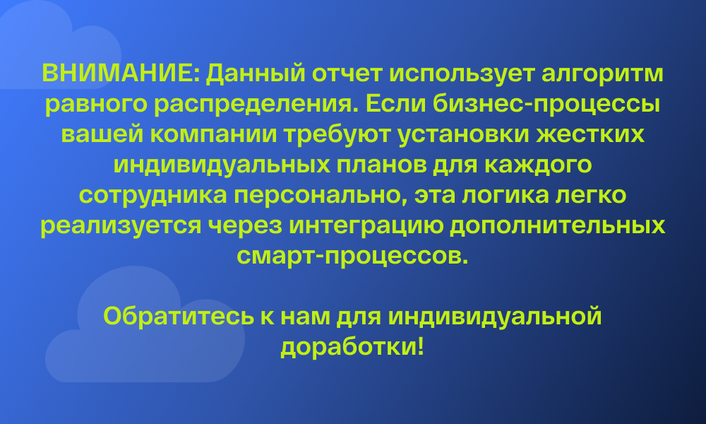 ВНИМАНИЕ: Данный отчет использует алгоритм равного распределения. Если бизнес-процессы вашей компании требуют установки жестких индивидуальных планов для каждого сотрудника персонально, эта логика легко реализуется через интеграцию дополнительных смарт-процессов. Обратитесь к нам для индивидуальной доработки!