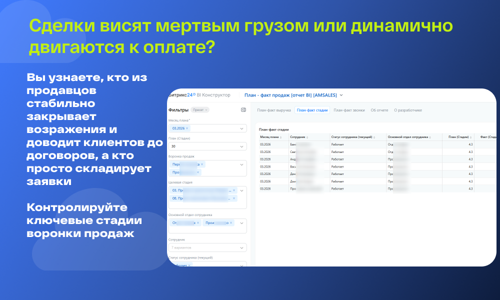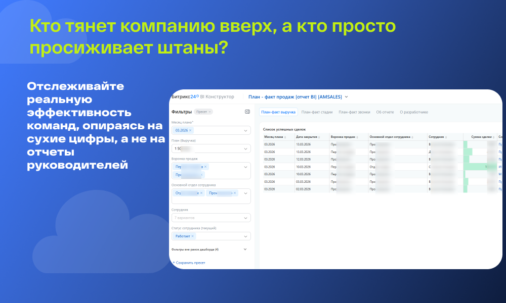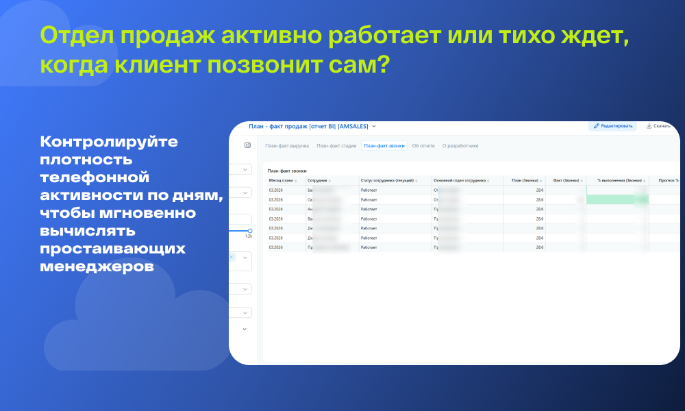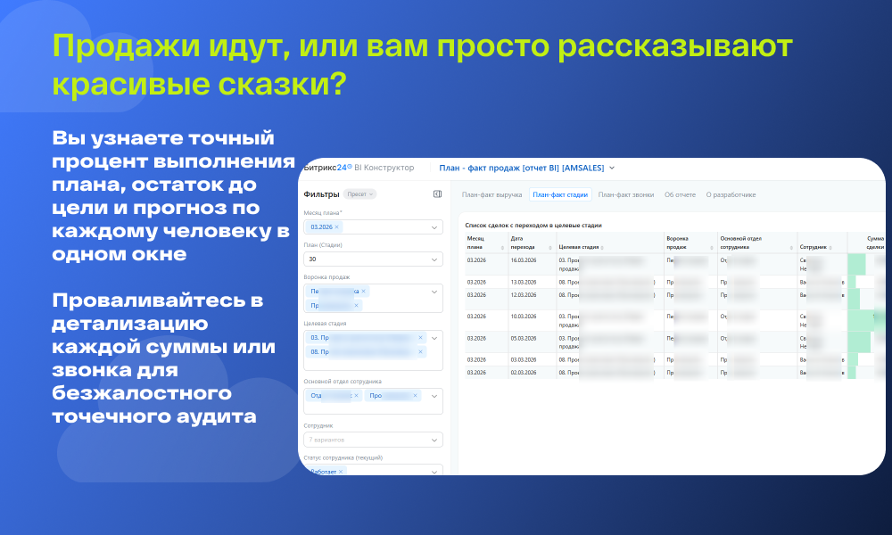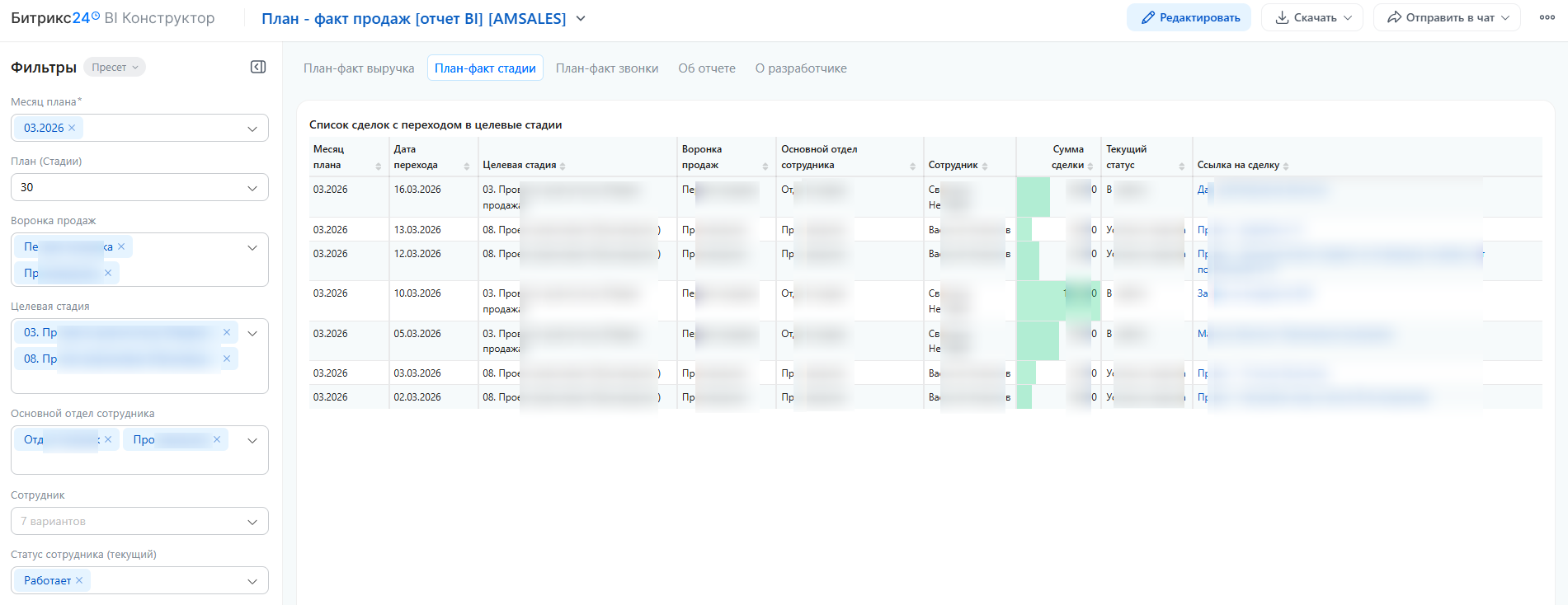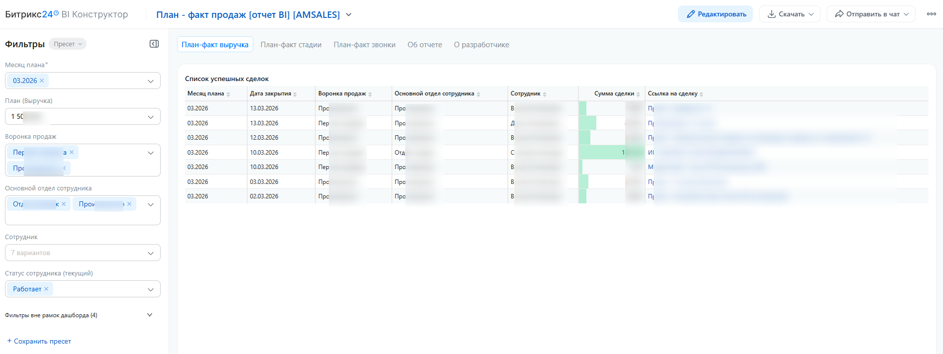 Настрой точный план-факт: деньги, звонки, этапы воронки
