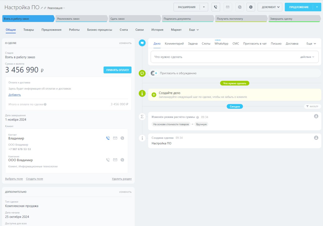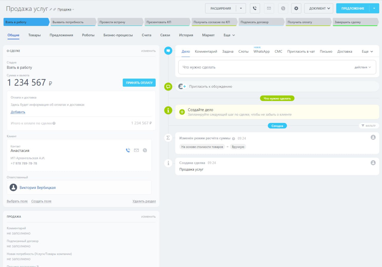 Это готовая универсальная CRM для автоматизации и оптимизации процессов работы с клиентами в сфере B2B. Она помогает управлять сделками, контролировать выполнение задач и анализировать результаты работы.