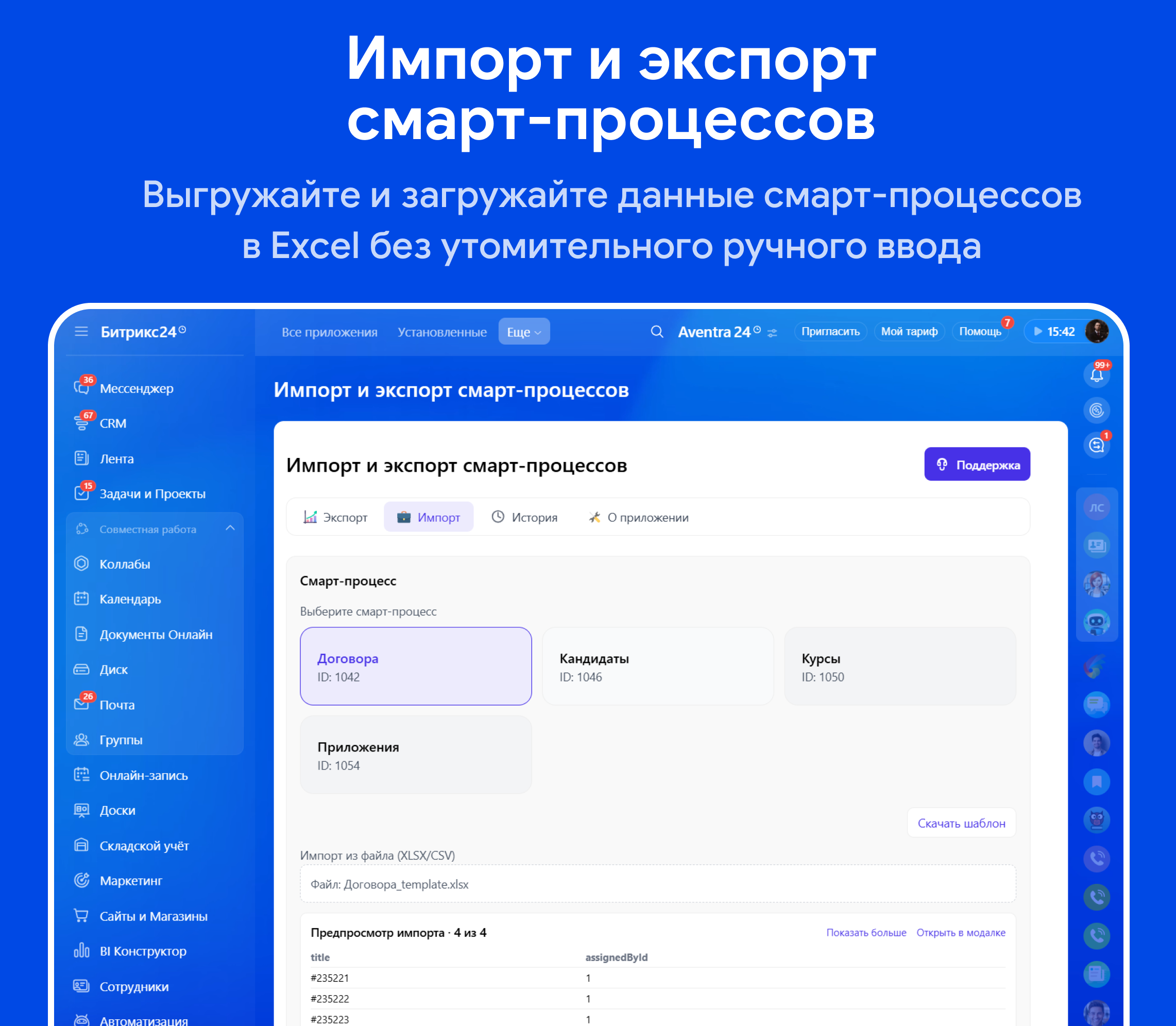 Массовая загрузка и выгрузка смарт-процессов через Excel